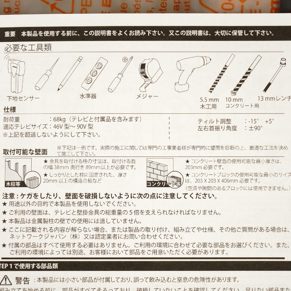 ●対応サイズ:68.0kgまで(46~90型まで)