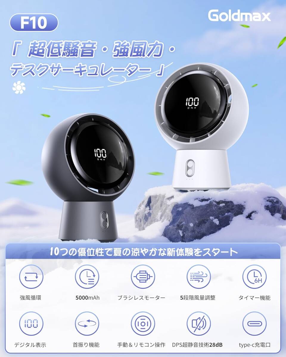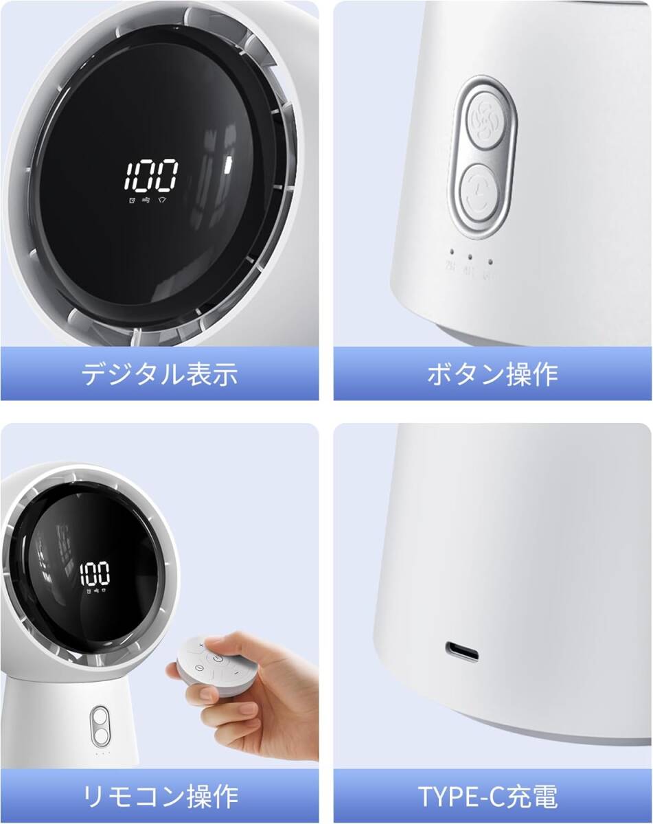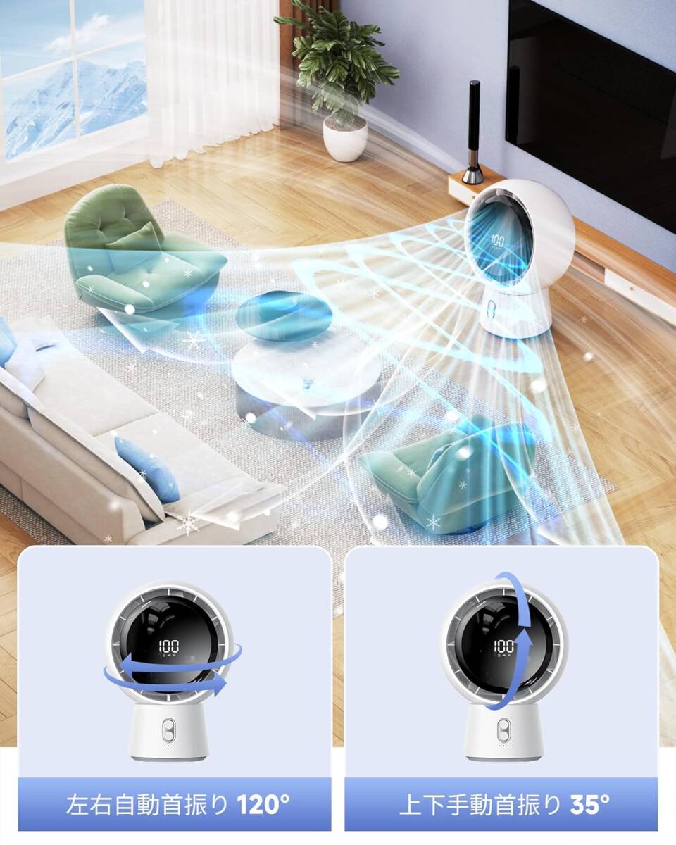 ハイグレー色 卓上扇風機 サーキュレーター 空気循環ファン 扇風機 卓上 コードレス 大風力 28dB静音設計 USB充電式ファン