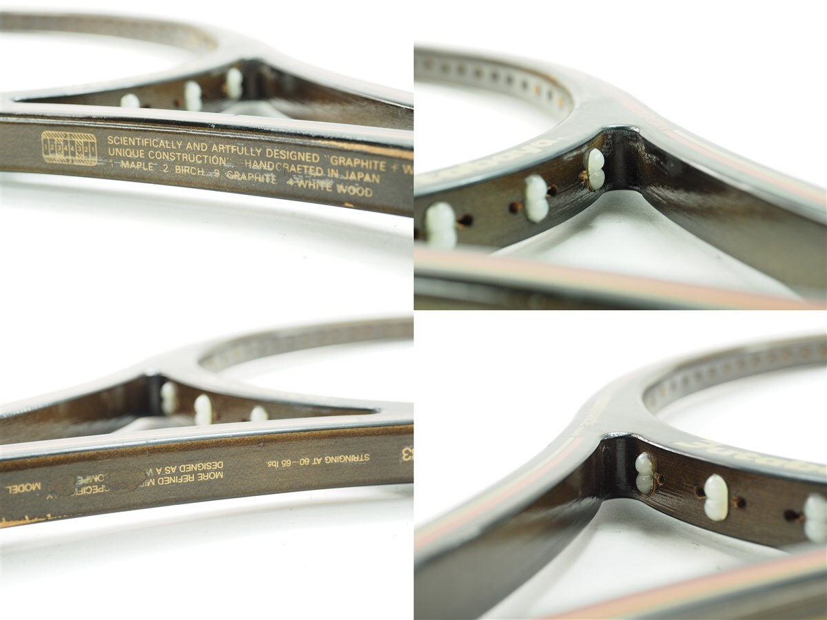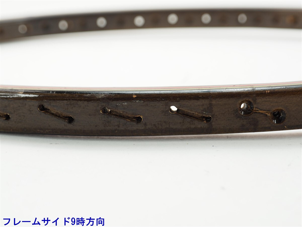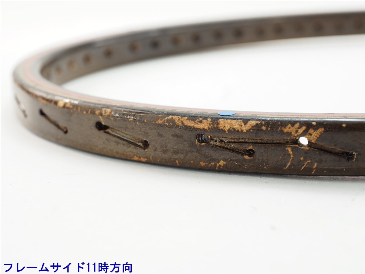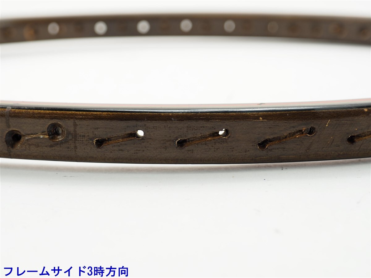 ラケット全体的にかなり傷んでる状態で、特にトップ部分には表面のウッドが削れて塗装が剥げてる状態で目立ちます。それ以外にもシャフトなどにも細かいキズは多くかなり使用感はあります。反りや歪みはありません。