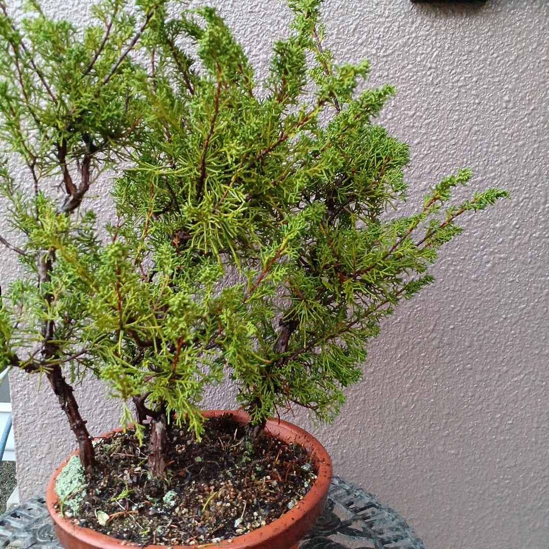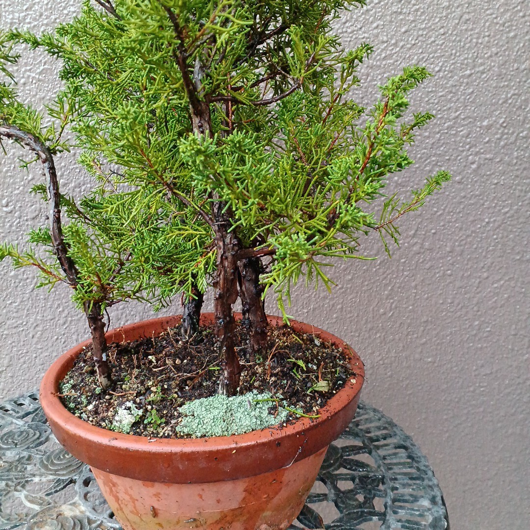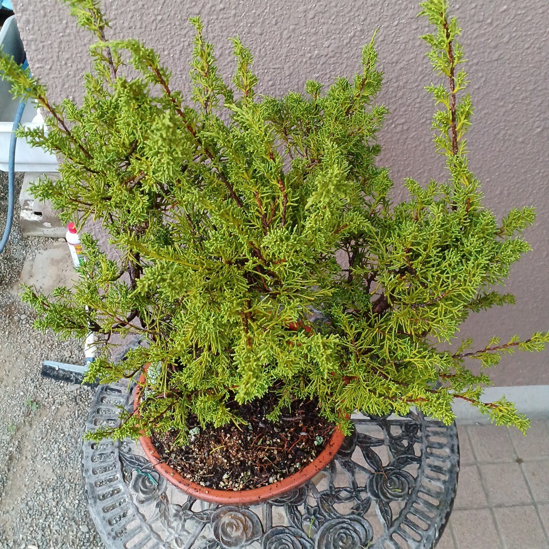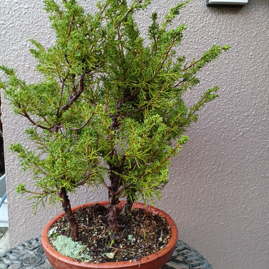 知人が自分の山から降ろして来たシンパクで寄せ植えにして有ります。