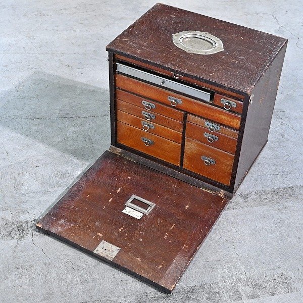 希少 THE TORIMITSU DENTAL 歯科往診箱 小物入れ 引き出し 収納 医者 薬 玄関 店 書斎 リビング 昭和レトロ風 取手 箪笥_松本民芸 岩谷堂