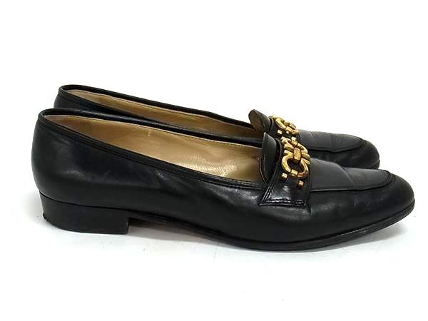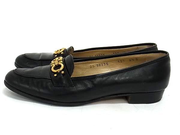 ■美品■ Salvatore Ferragamo フェラガモ ダブルガンチーニ ローファー サイズ6 1/2 (約24cm) 靴 シューズ ブラック系 DG5007
