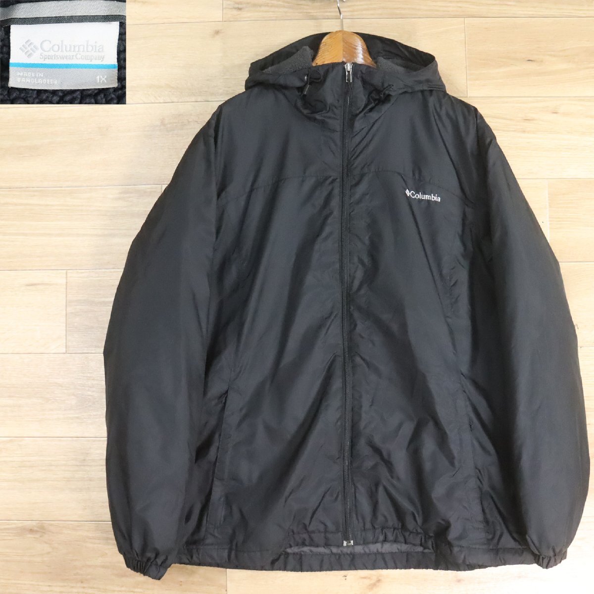 L4R/Y7.25-4 Columbia コロンビア ナイロンパーカー 裏ボア ジップアップ ブルゾン ジャンパー 1X ブラック アメリカ古着
