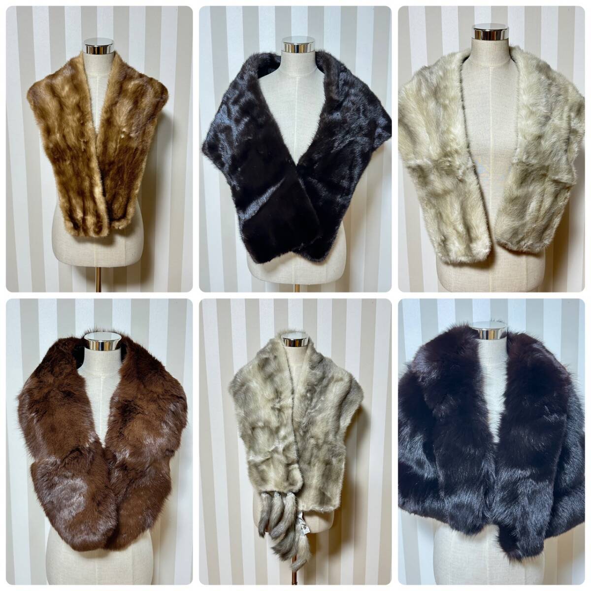 商品:★1円〜【毛皮6点まとめ】 ミンク ショール まとめ売り毛皮 本毛皮 高級 ファー 大判 ブラウン系 グレー レディース 成人式 和装 K160756