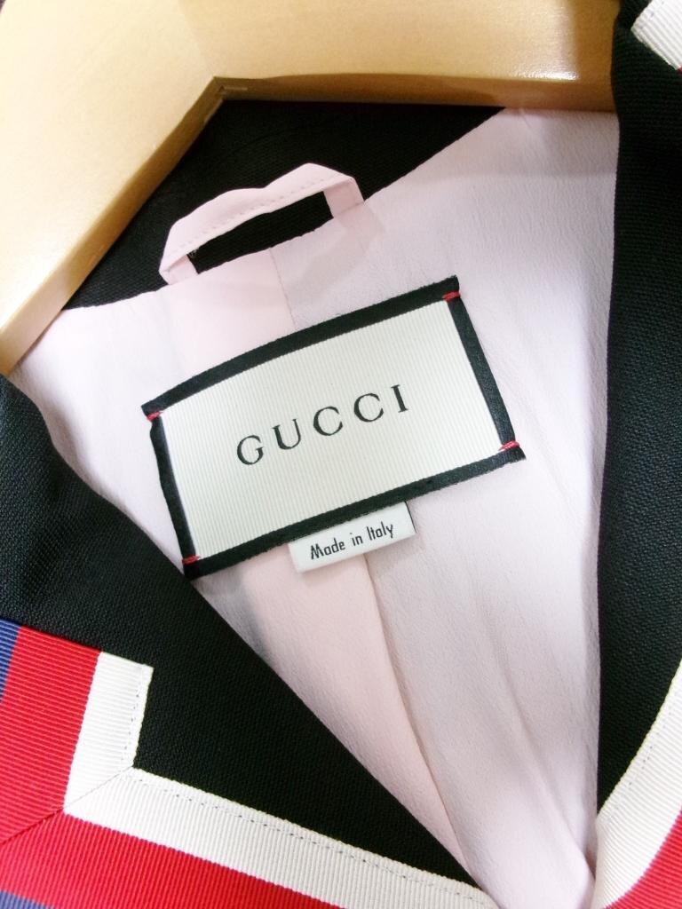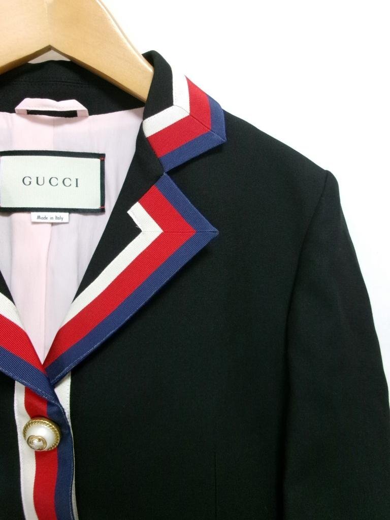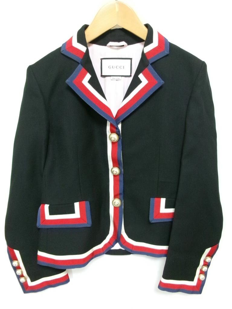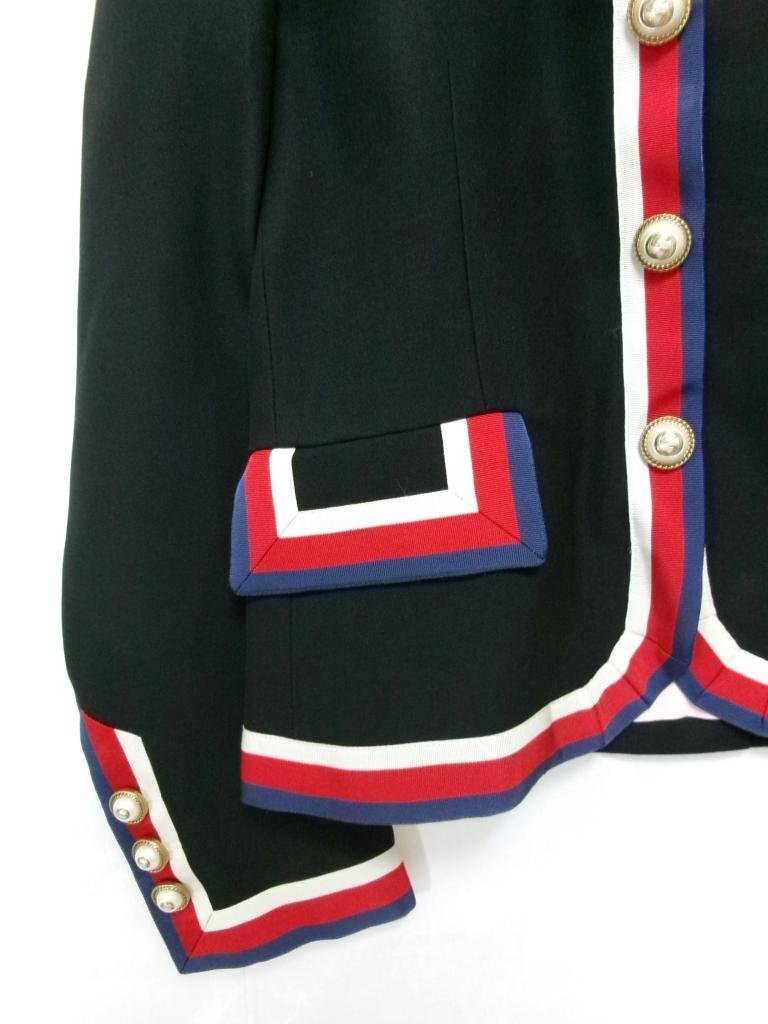 【送料込】 美品!GUCC グッチ ウエアー ジャケット ブラック 黒 ウール、コットン混 シュリートリコロールジャケット size36 S/973733