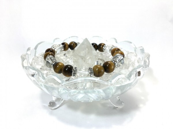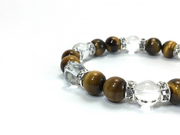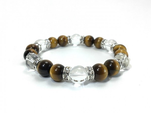 タイガーアイ×水晶 パワーストーン ブレスレット 天然石ブレス 10mm (ロンデル:シルバー) メンズ・レディース 男性・女性 浄化済み