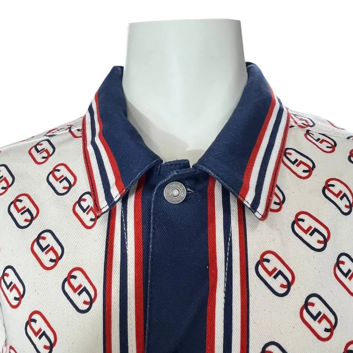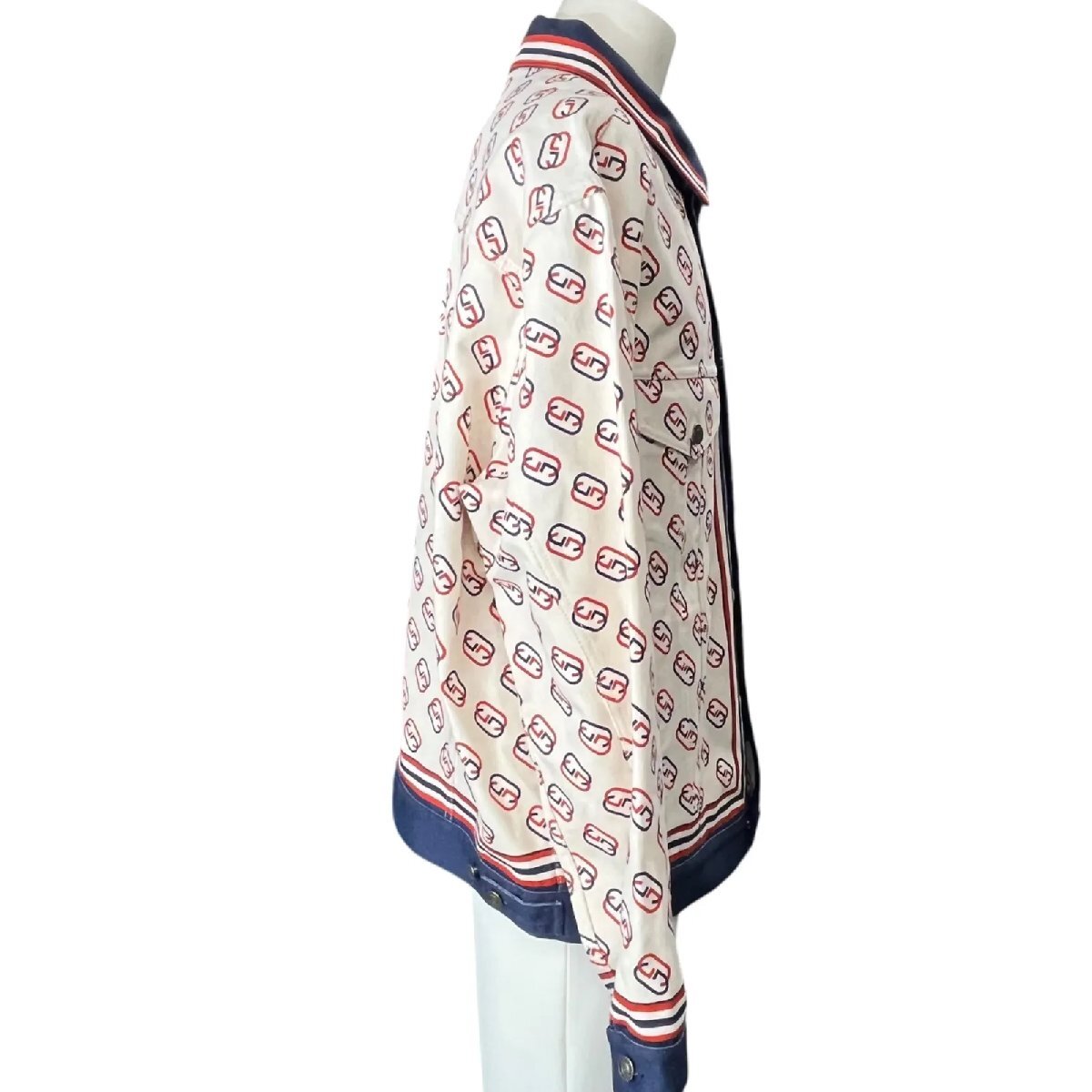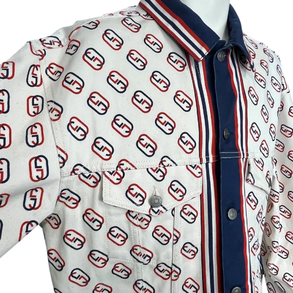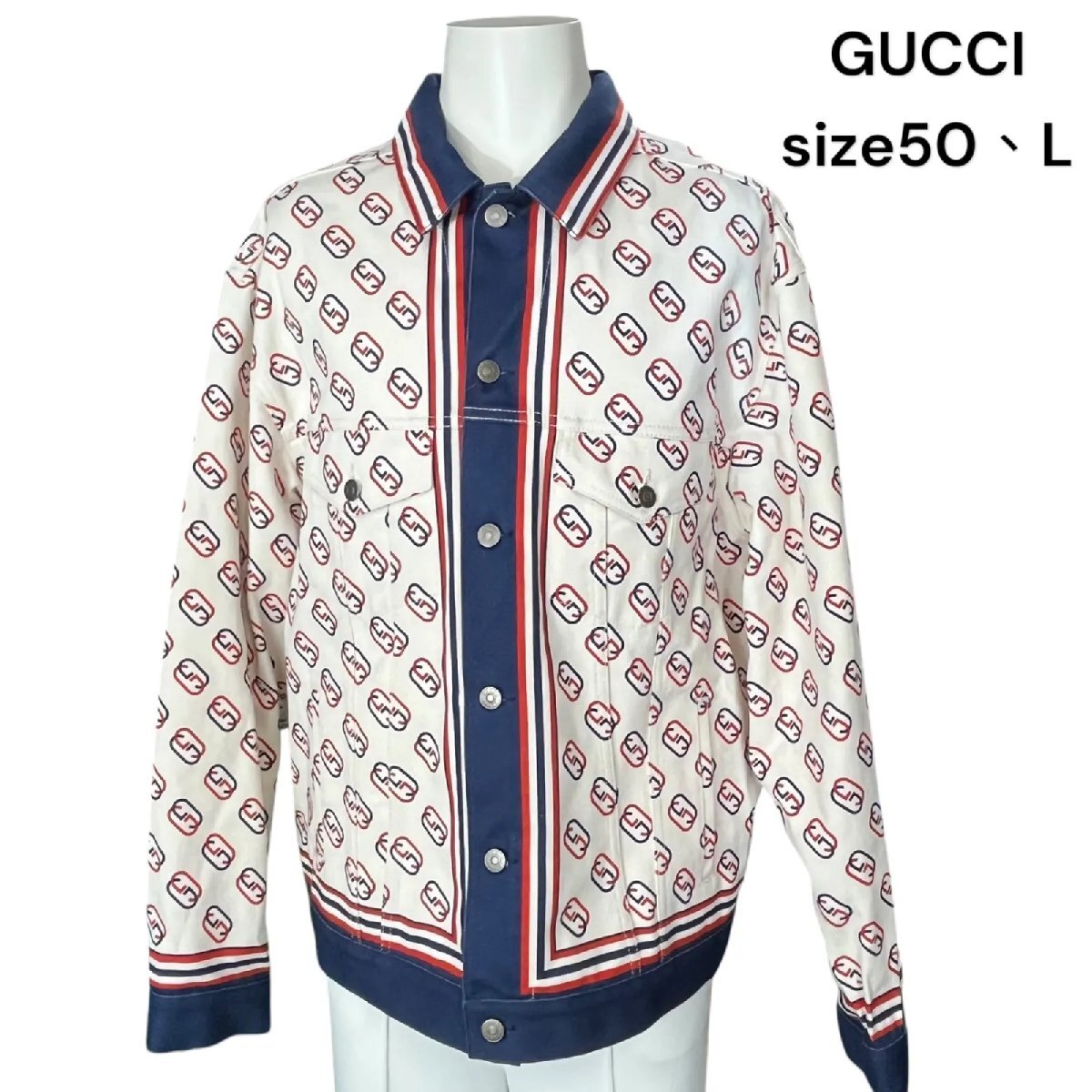 ●美品 GUCCI グッチ 19AW Gジャン デニム ジャケット インターロッキング GG柄 シェリーライン 50、L メンズ 中古 S5O070