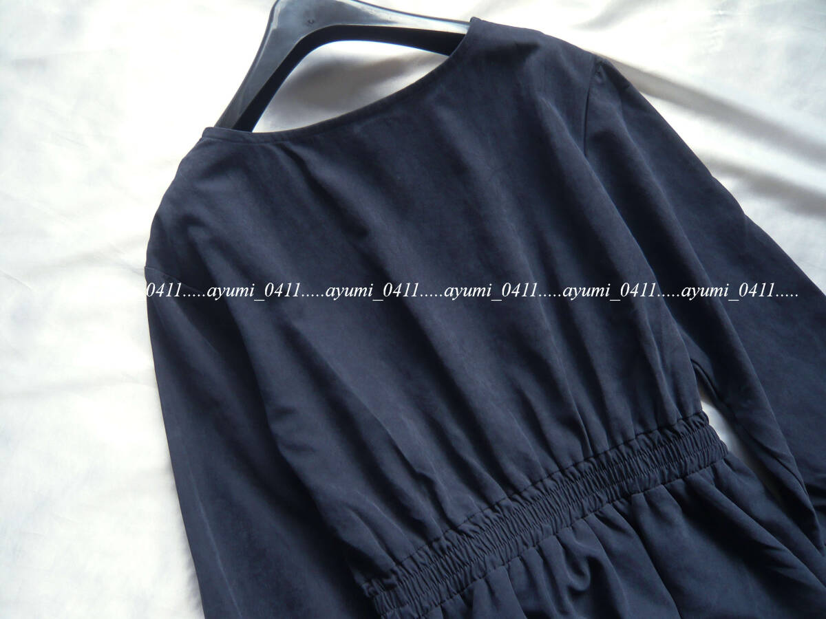 ★未使用★Vis ビス/紺ネイビー・ウエストリボン付き&ゴールドバー付き ピーチ 切替フレアーワンピース/手洗い◎/フリーサイズ