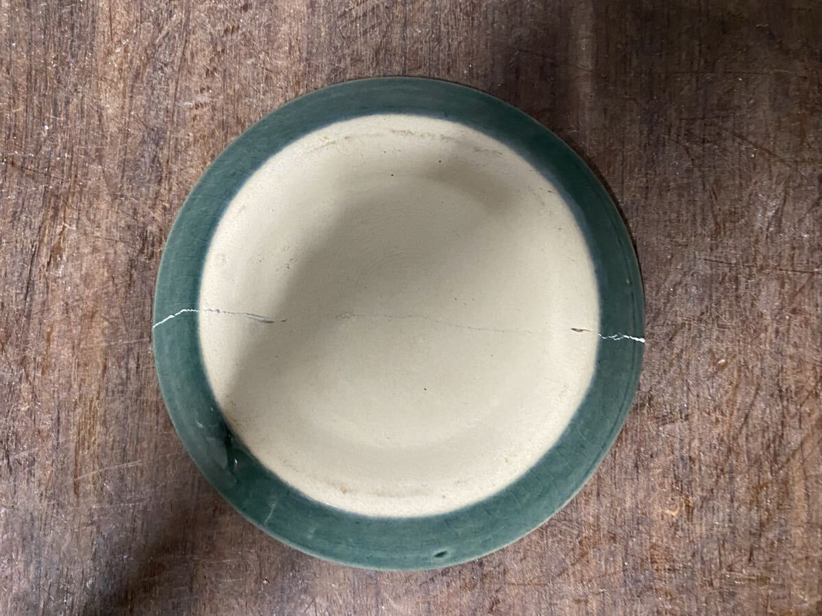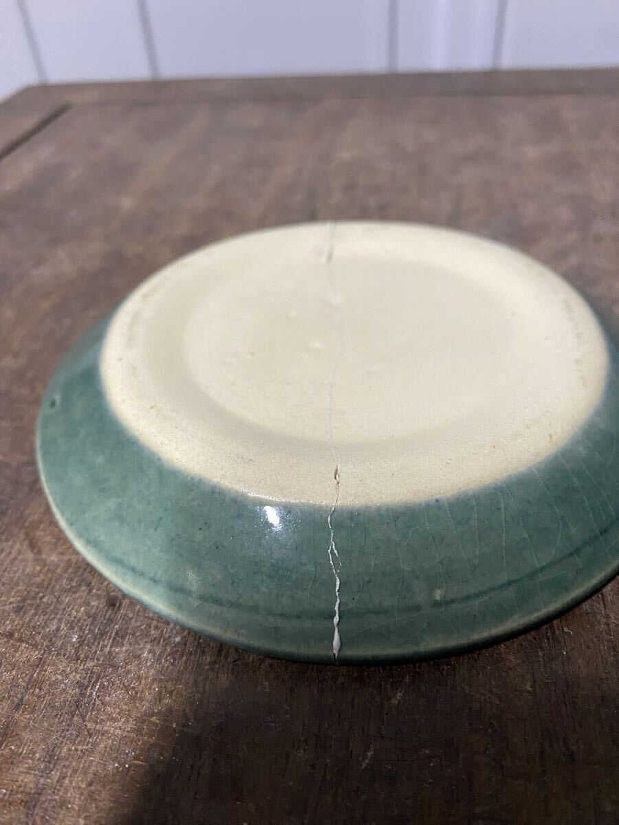 一度割れた箇所を接着剤で補修したあとがあり、屋外で保管していたので水あかや土汚れが多少あります。詳しくは画像をご確認ください。
