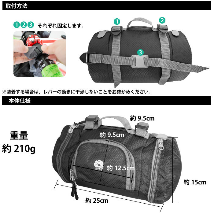 ウィンクブレーカーやタオル、ペットボトル(350ml)など小物なら しっかり収納できます。 背中にバックを背負うことなく快適にライドを楽しめます。 ストラップで取付けるので取付簡単で、脱着も即座にできます。 またストラップ取付なのであらゆる自転車に装着可能です。 ・3点で固定します。 ・ロードバイクやマウンテンバイク、クロスバイクあらゆる自転車に。 ・型崩れ防止の安定板が入っています。 ・センター収納とサイドに収納スペースあり。 ※装着する場合は、レバーの動きに干渉しないことをお確かめください サイズ約:約15cmx25cmx15cm 材質:210Dナイロン, ポリエステル ポケットの数:3 重量:210g 留め具:ファスナー |