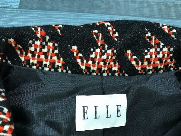 美品!ELLE エル レディース 千鳥 裏地 起毛 ジャケット 40 秋冬 黒朱白 です。