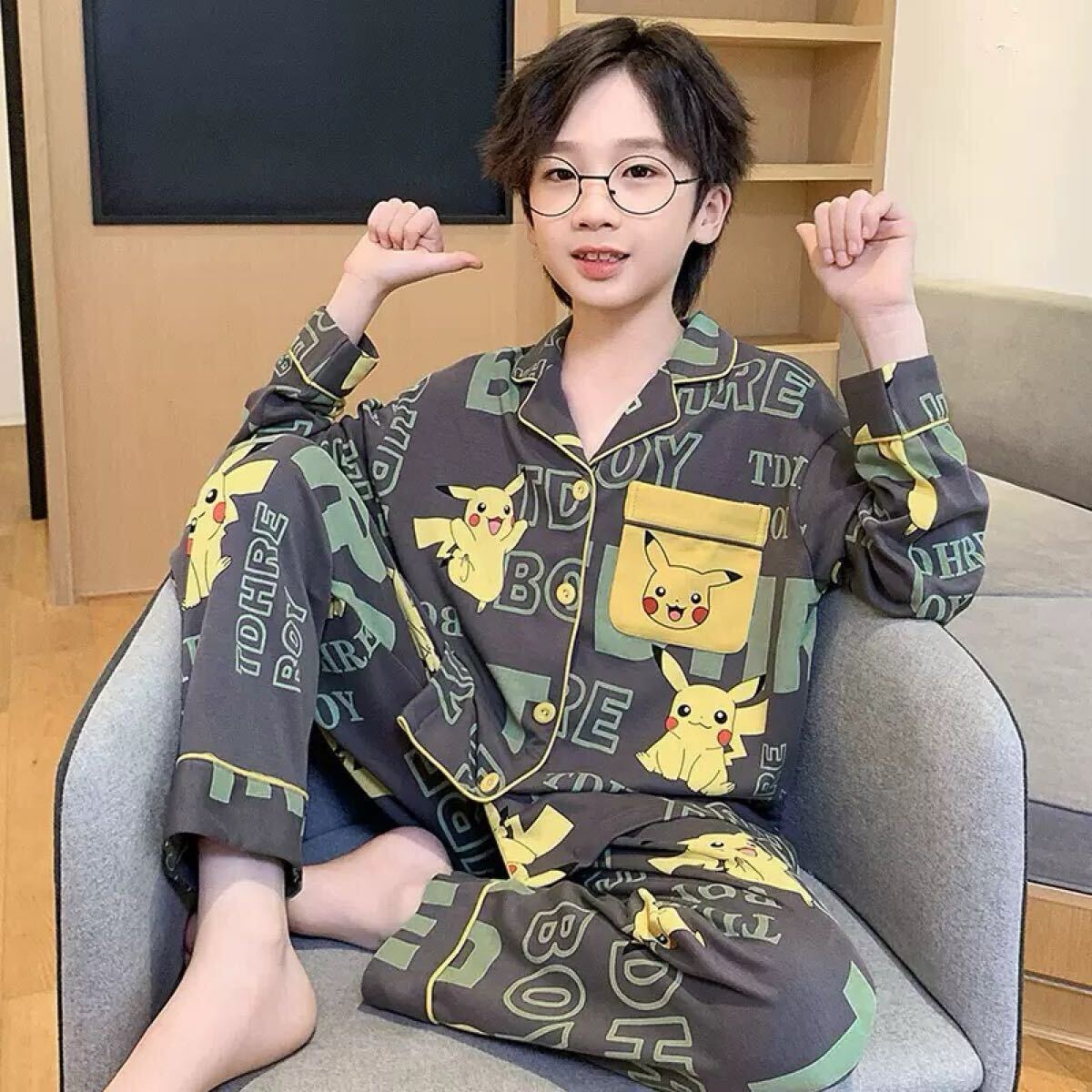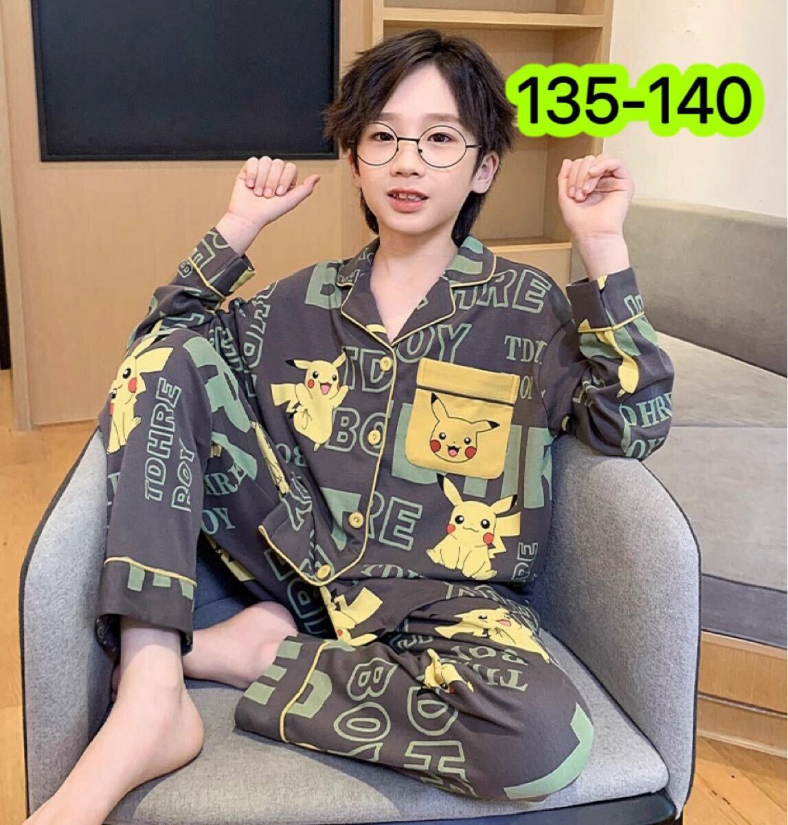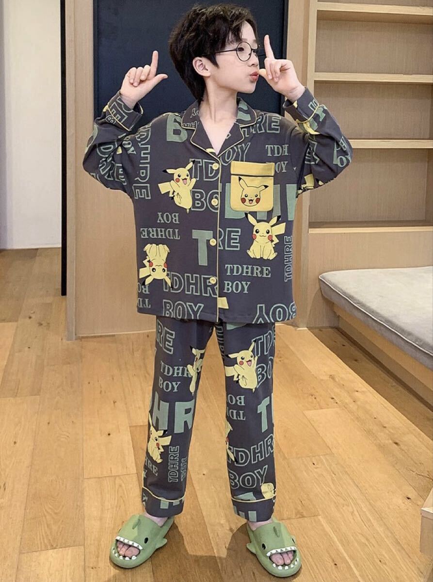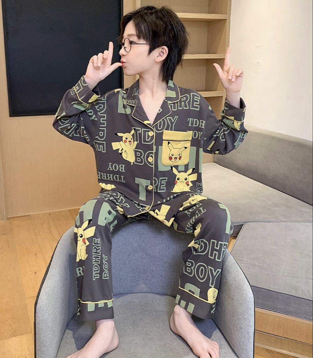 キャラクターデザインが可愛い長袖パジャマ上下セットです。柔らかい綿風素材で肌触りも良く、部屋着やパジャマにぴったりです♪