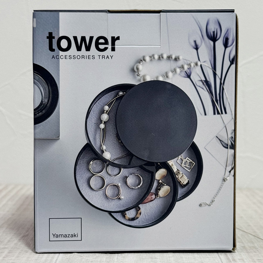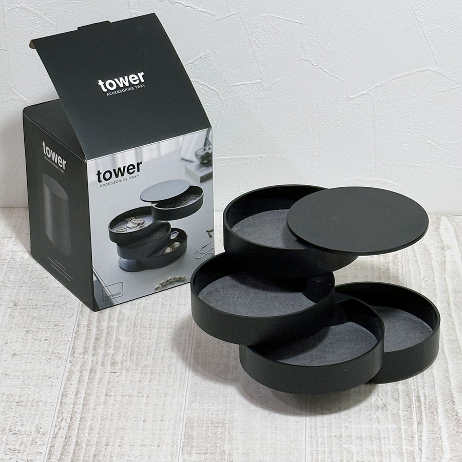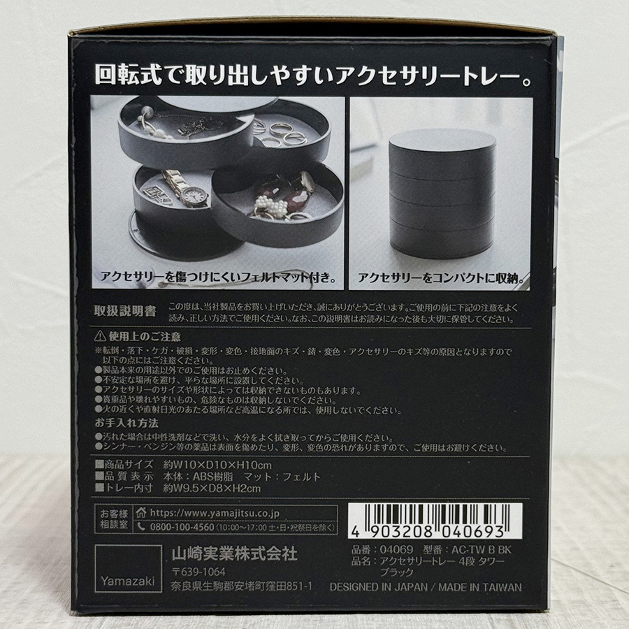 未使用★山﨑実業 Tower アクセサリートレー 4段 タワー トレイ アクササリーケース 回転式 [ブラック]