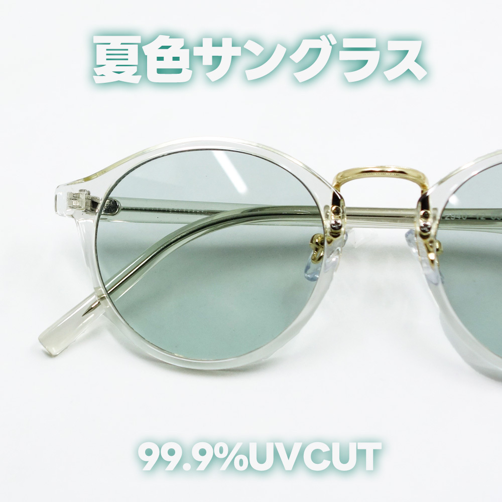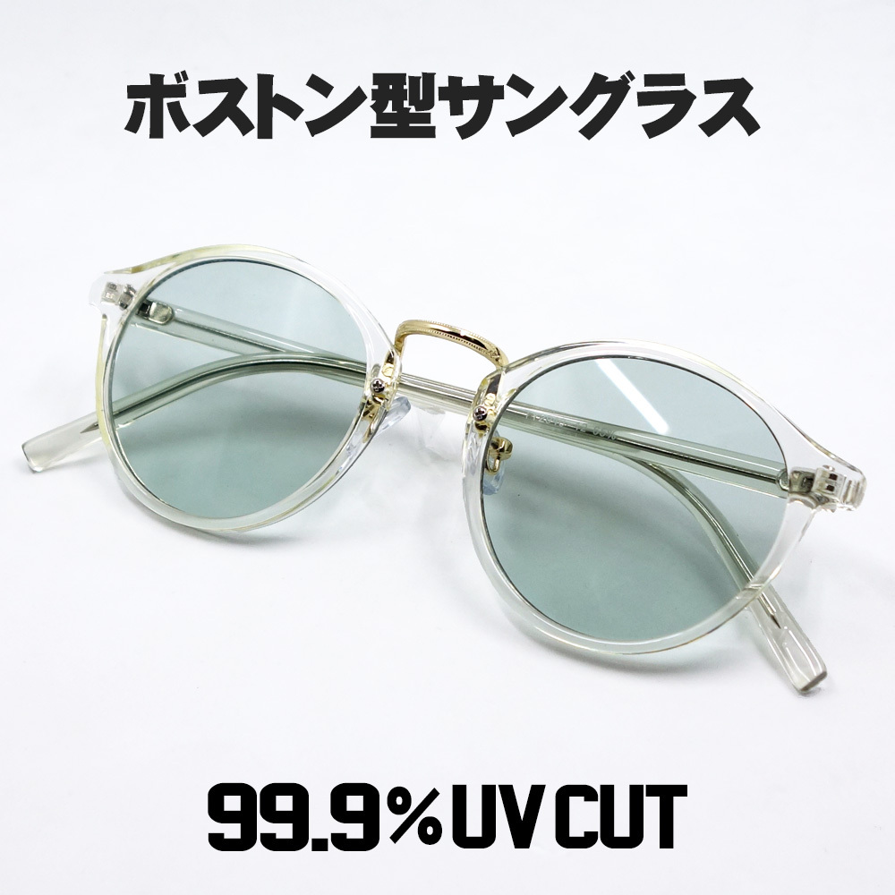 夏色 サングラス レディース メンズ 男女兼用 ラウンド ボストン クリアーフレーム グリーン