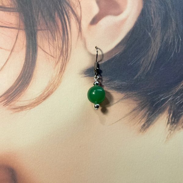 こちらは、10mm玉のアベンチュリンを使用した一粒フックピアスです。シンプルなデザインはシーン問わず、どんなコーディネートにも合わせ易く使い勝手がいいアイテムです。今回は一粒ピアスの要望が多かった為制作しました。気になる方は是非この機会にどうぞ。