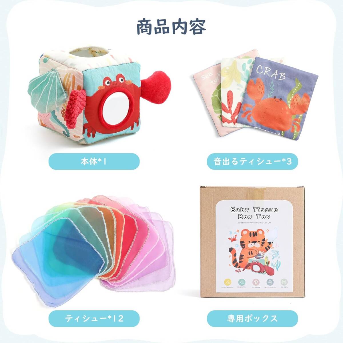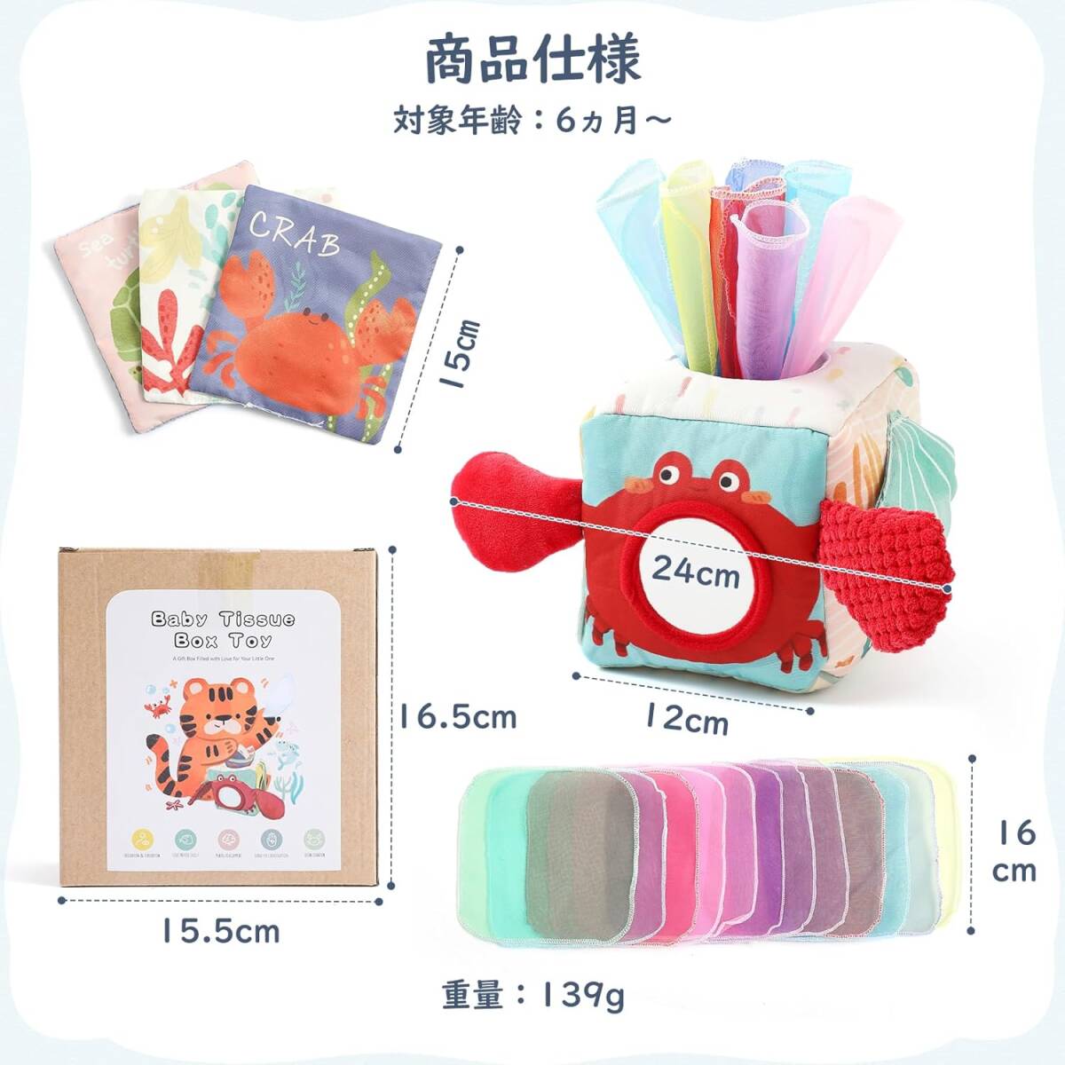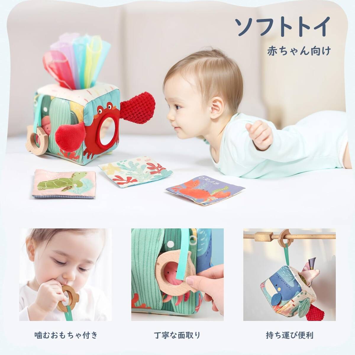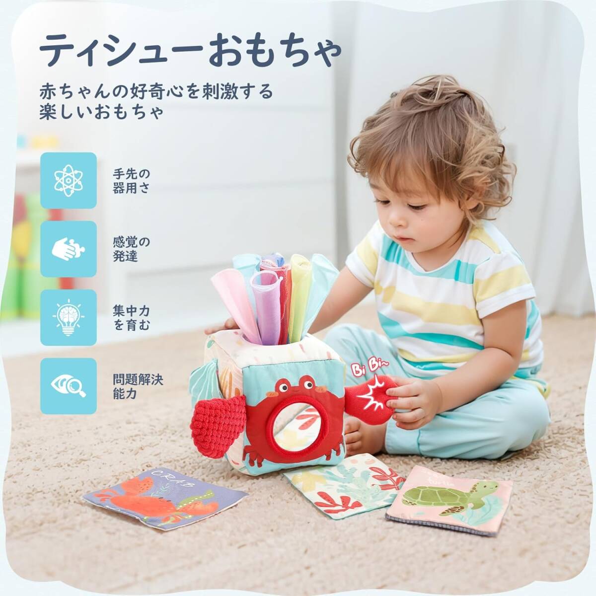 ティッシュ おもちゃ 赤ちゃん 布製 ティッシュボックス 玩具 柔らか ティッシュ遊び 知育玩具 0歳 1歳 (レッド)