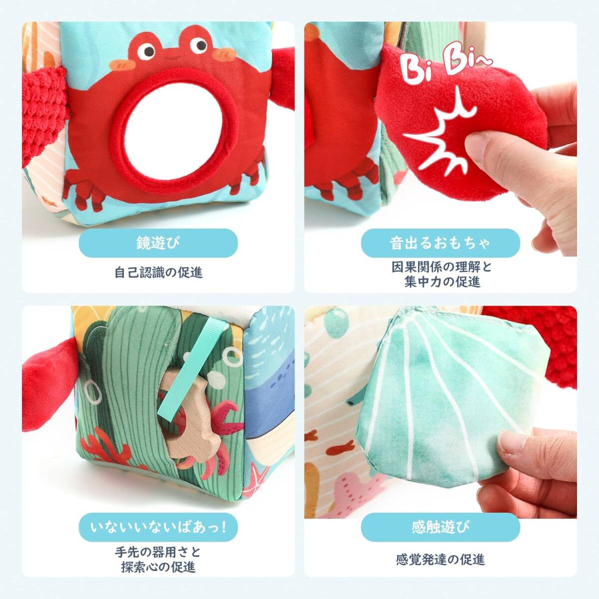 • 【知育効果】かわいい海洋動物たちと一緒に冒険しましょう!鮮やかな色、様々な触感、様々な音など色な仕掛けがたくさん楽しめます。赤ちゃんの早期開発に必要な要素がたっぷりです!