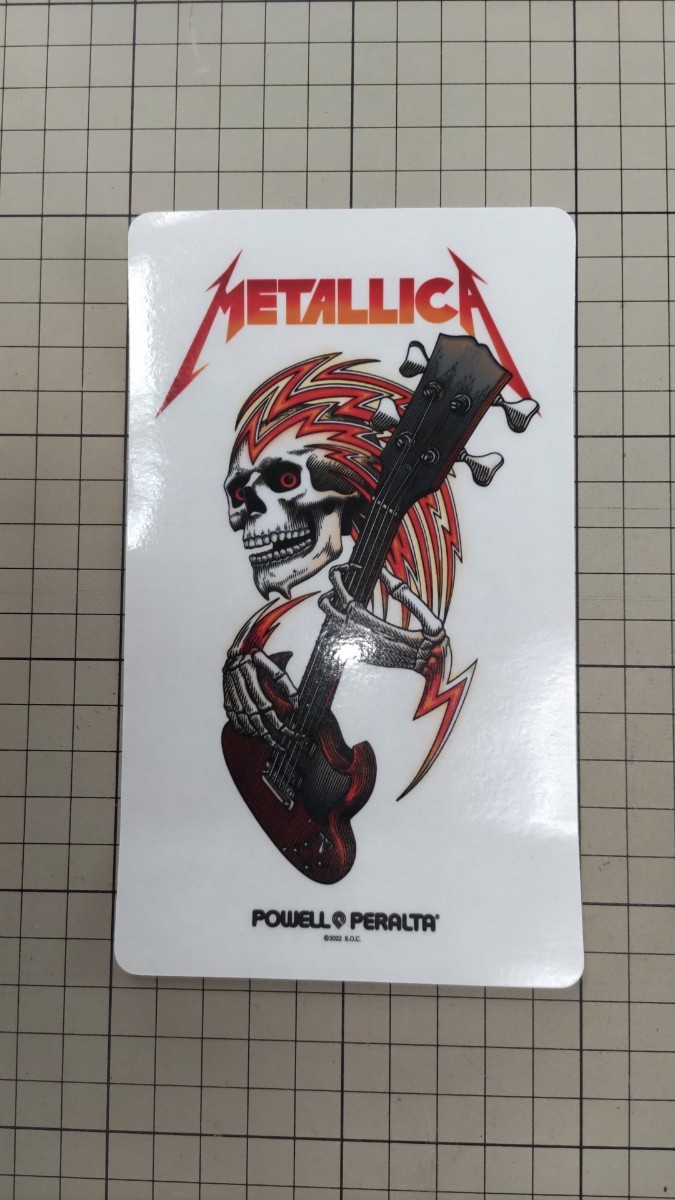 powell×METALLICAのステッカーです。台紙1マス1センチからご判断ください。スケートボード関係多数出品中です。