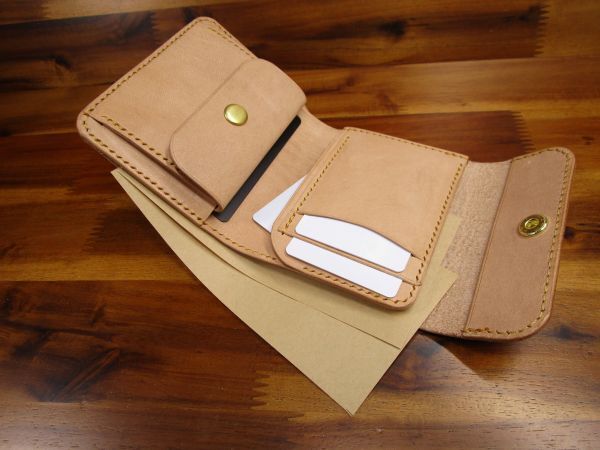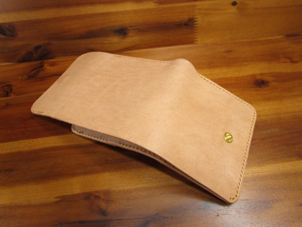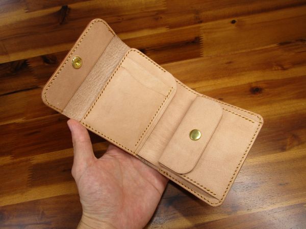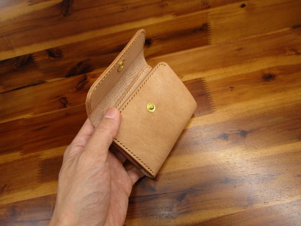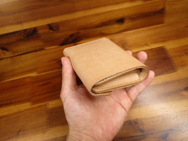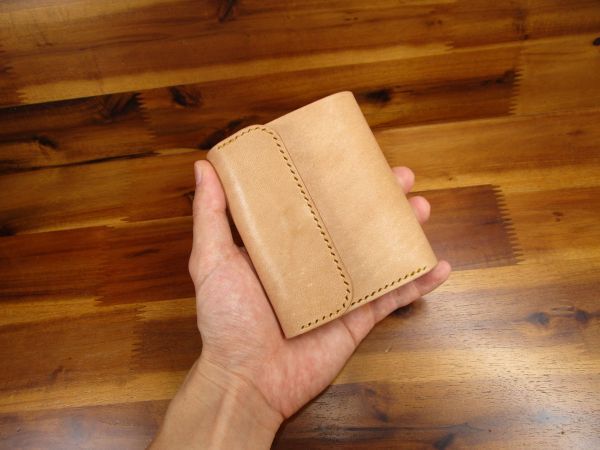 コンパクト財布 栃木レザー ナチュラル 手縫い 三つ折り 財布 ミニマル キャッシュレス 生成り 日本製 コンパクト ミニ財布 エイジング