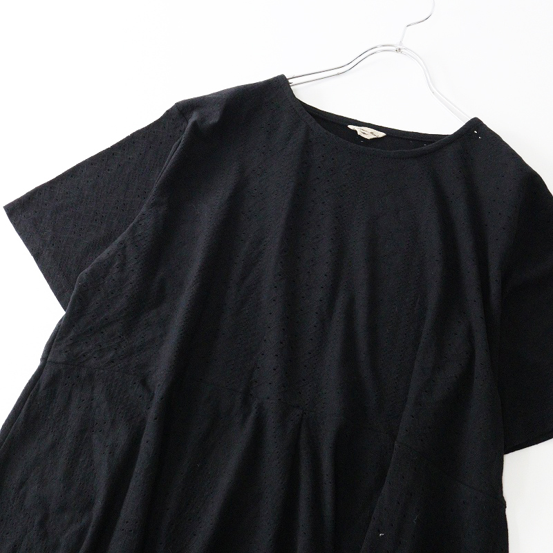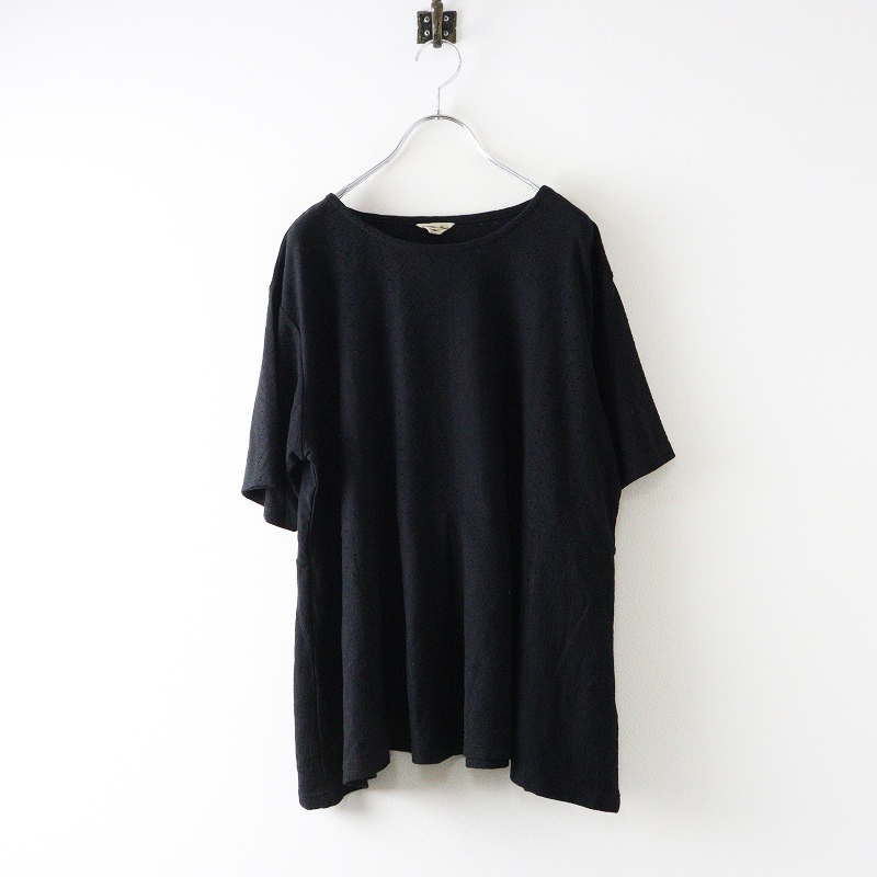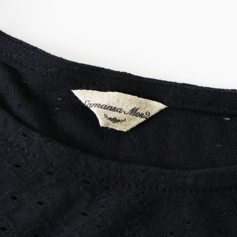 サマンサモスモス Samansa Mos2 SM2 アイレット切替フリルカットソー F\ブラック 透かし レース Tシャツ フレア【2400014639995】