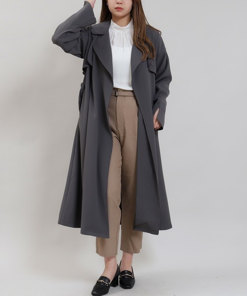 キーワード:トレンチコート コート レディース ロング丈 無地 秋 冬