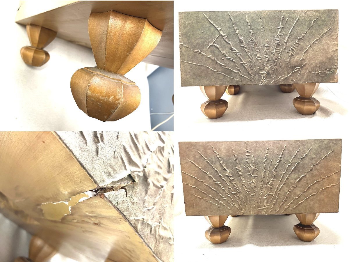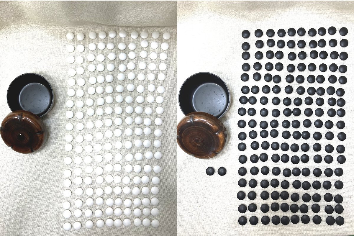 | ■■商品詳細■■ メーカー : 不明 サイズ : (約)幅43.2 奥行47 高さ31 (cm) 重量 : (約)21kg 碁石 : 厚さ約9mm (白) 180個 (黒) 172個 ※サイズはメジャーでの採寸となります。多少の誤差はご了承下さい。 ※掲載写真は蛍光灯等の光の反射により、多少色の違いがある場合が御座います。 【商品説明】 こちらの商品は”中古品”で御座います。 ◆商品状態 ・・・全体的に傷があり、使用感がございます。 側面に和紙のようなものが貼り付けられております。 裏面に亀裂部分があり、修復履歴がございます。 詳細は画像にてご確認くださいませ。 年代物である旨ご了承・ご納得の上、ご入札をお願いいたします。 ☆店頭でのお引取り大歓迎☆ 別途:この他にも“色々”出品しています 【ここクリック】でご覧下さいませ。 | ||