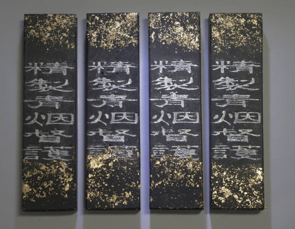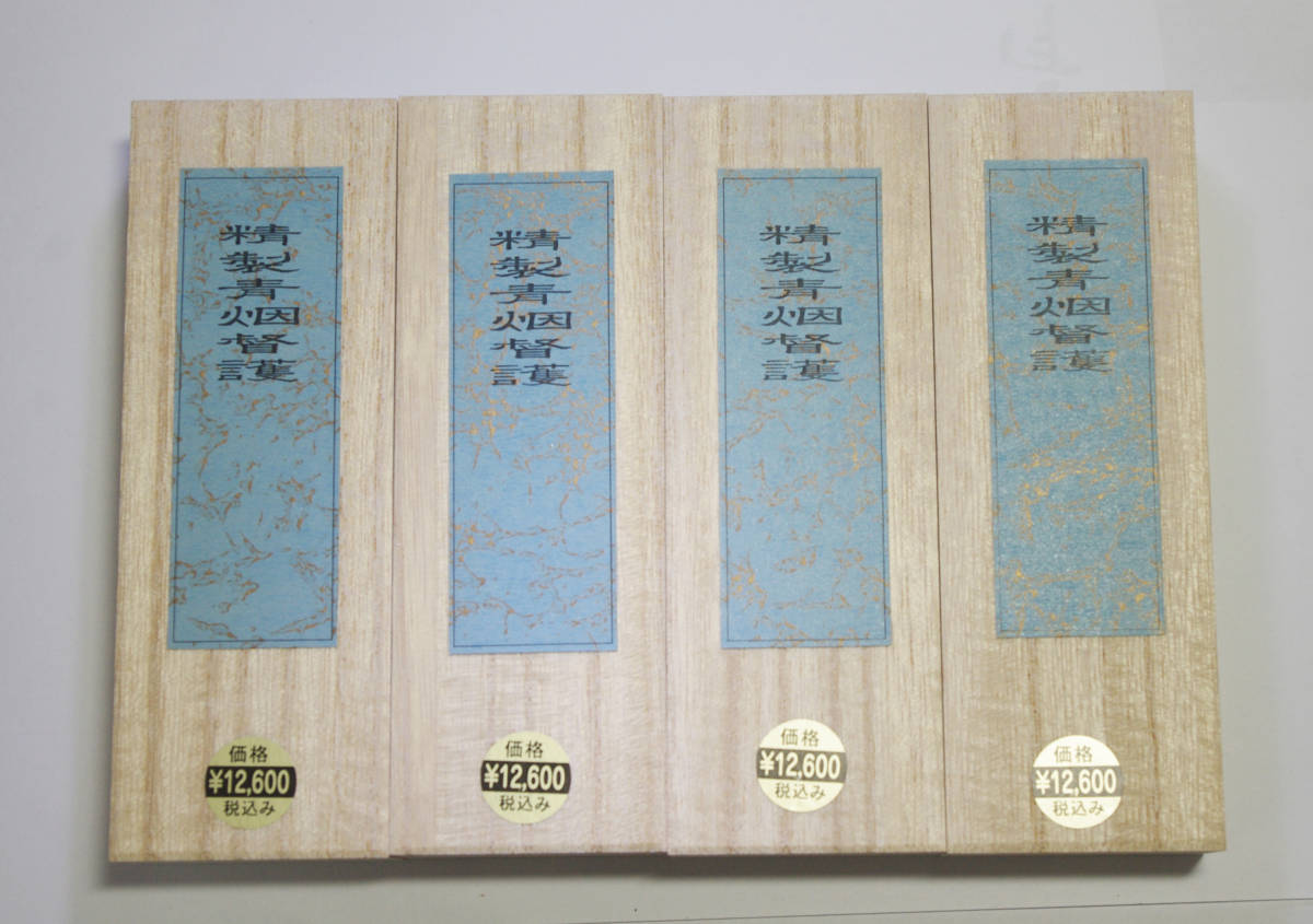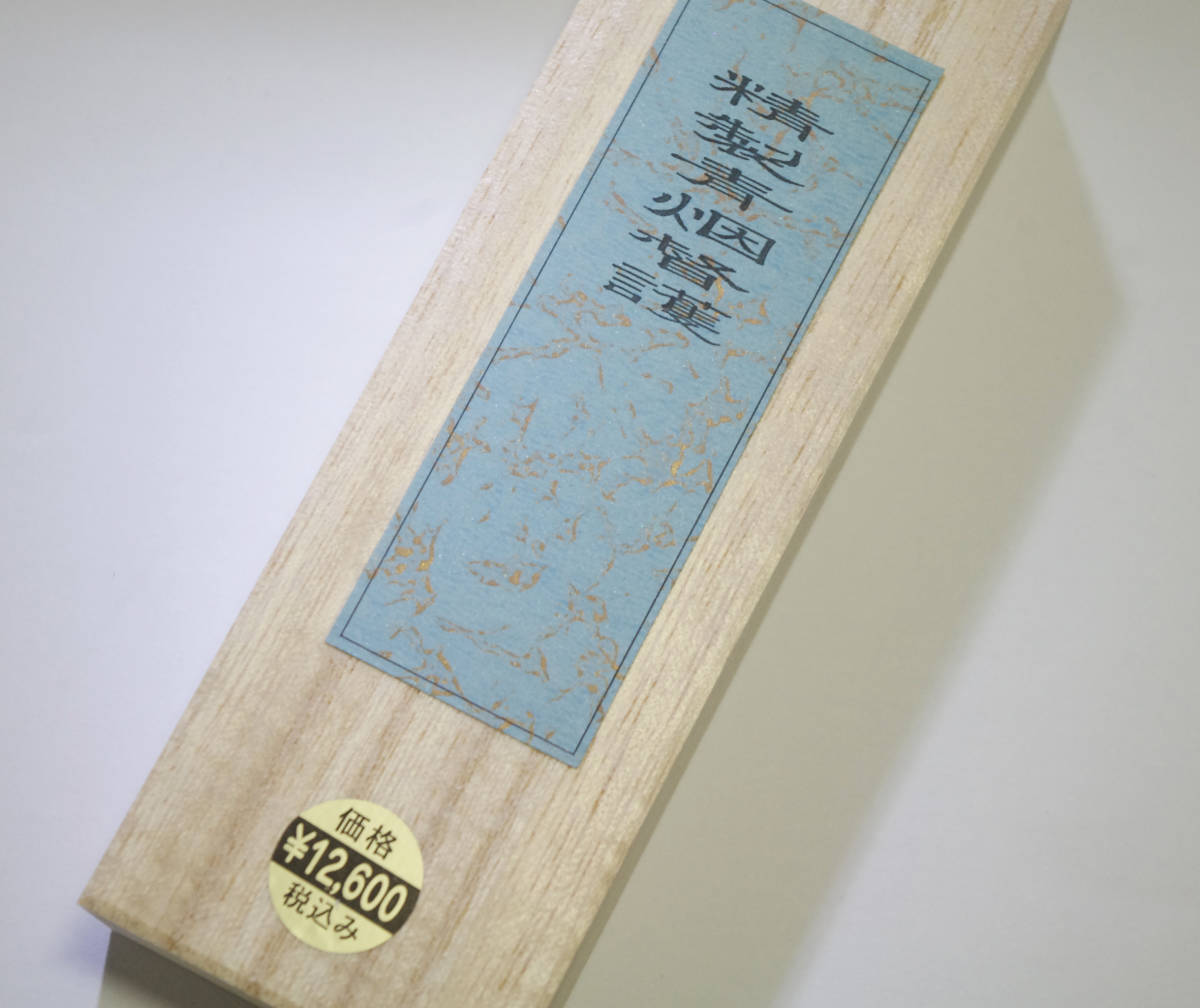 固型墨 書道用墨 枯墨 青墨「精製青烟督護」3丁型を4丁セットで出品いたします。 淡墨用として非常ににじみと基線がしっかり出る鮮やかな青色です。 また、艶の無い濃墨では、気品のある純黒です。 書画共に使用できる貴重な逸品です。 <墨の大きさ> ・約108×27×12㎜ ・重さ65g 全て新品未使用の桐箱入りになります。