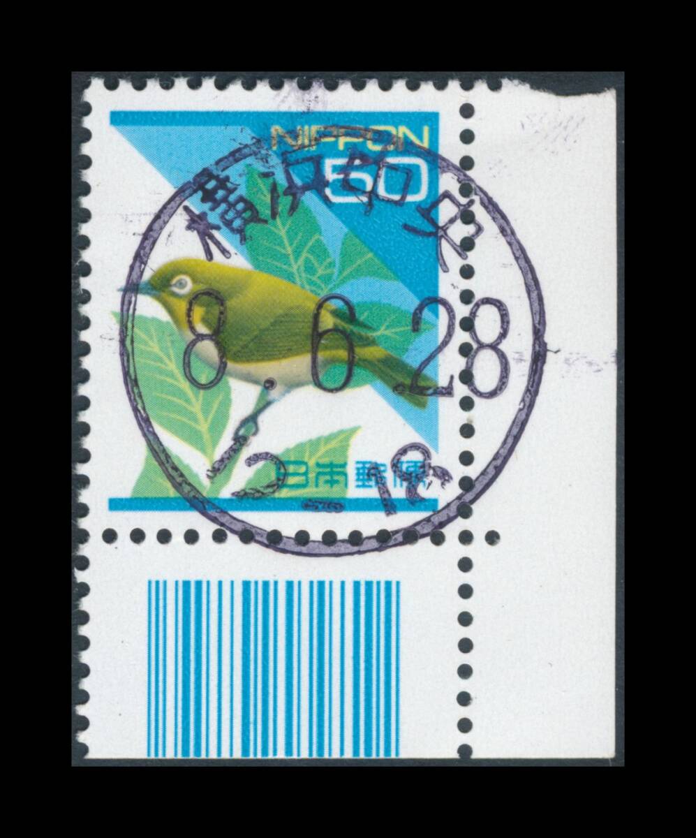 H38 使用済/バーコード入|目白50円/第4コーナーバーコード下付単片 丸型印:横浜中央/8.6.28/12-18 裏糊有り