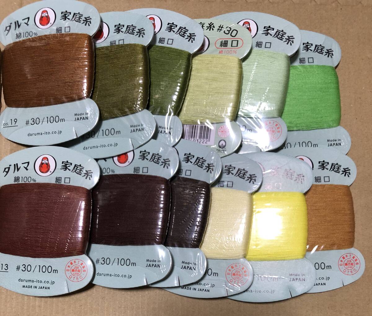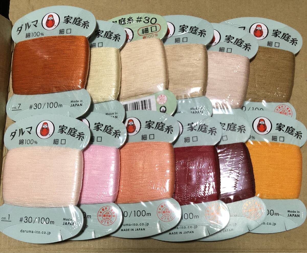 手縫い糸【横田 ダルマ】全56色セット 家庭糸#30 細口 100m (赤・白・オフホワイト・生成り・黒・1~51番)
