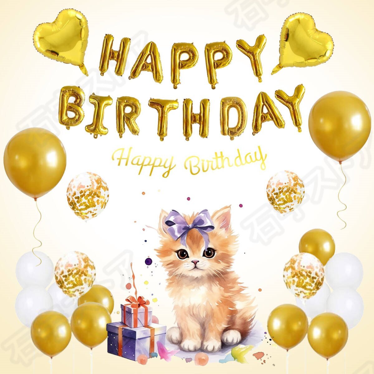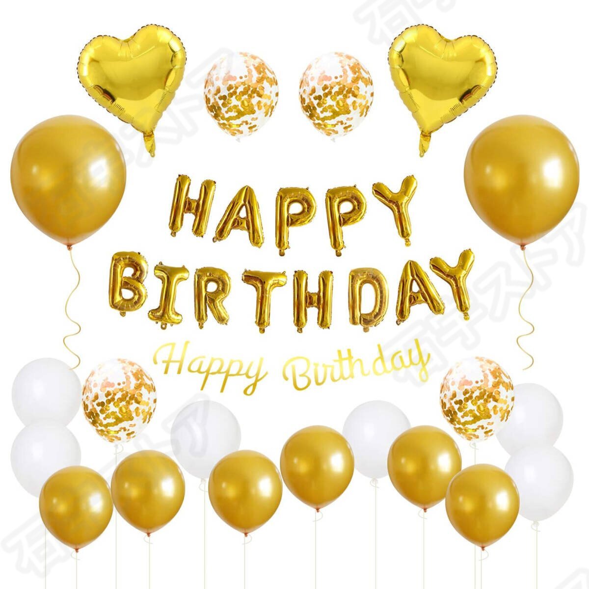 誕生日 バルーン飾り付けセット バースデー 飾り HAPPY BIRTHDAY文字風船 紙吹雪風船 誕生日パーティー イベント装飾 ゴールド shw285.1