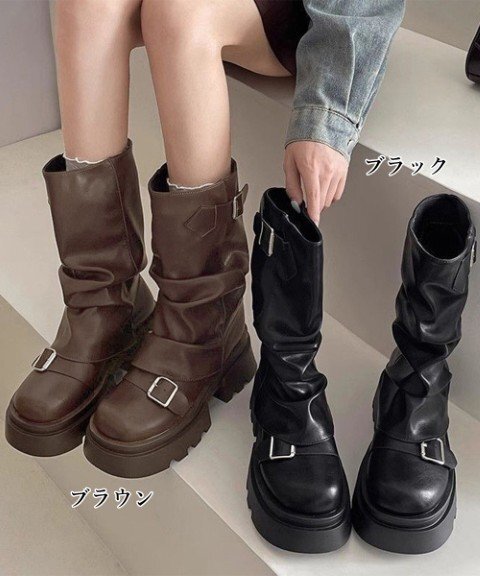 歩きやすい美脚脚長 カバーブーツ 人気 プラットフォーム靴