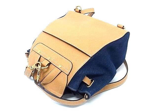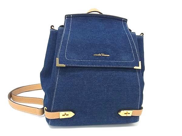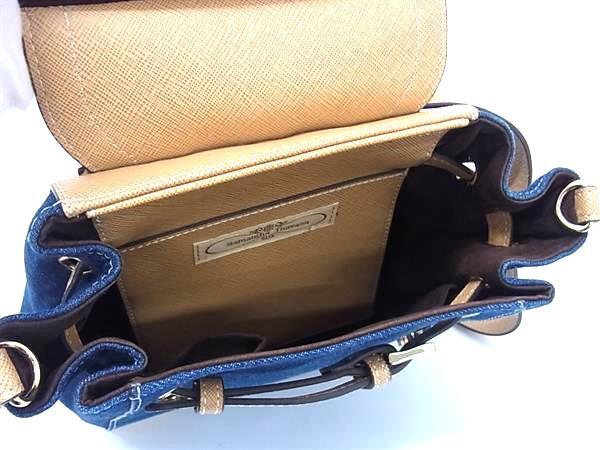 1円 ■美品■ Samantha Thavasa サマンサタバサ デニム×レザー リュックサック バックパック デイパック ブルー系×ベージュ系 FR4922