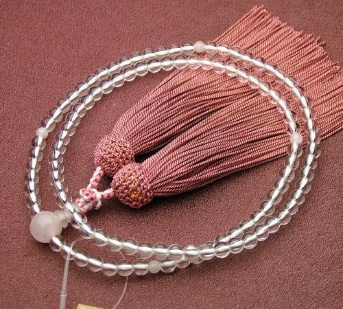 【臨済宗[女性用]】本水晶 ローズクウォーツ仕立 8寸【数珠/念珠/本式念珠】