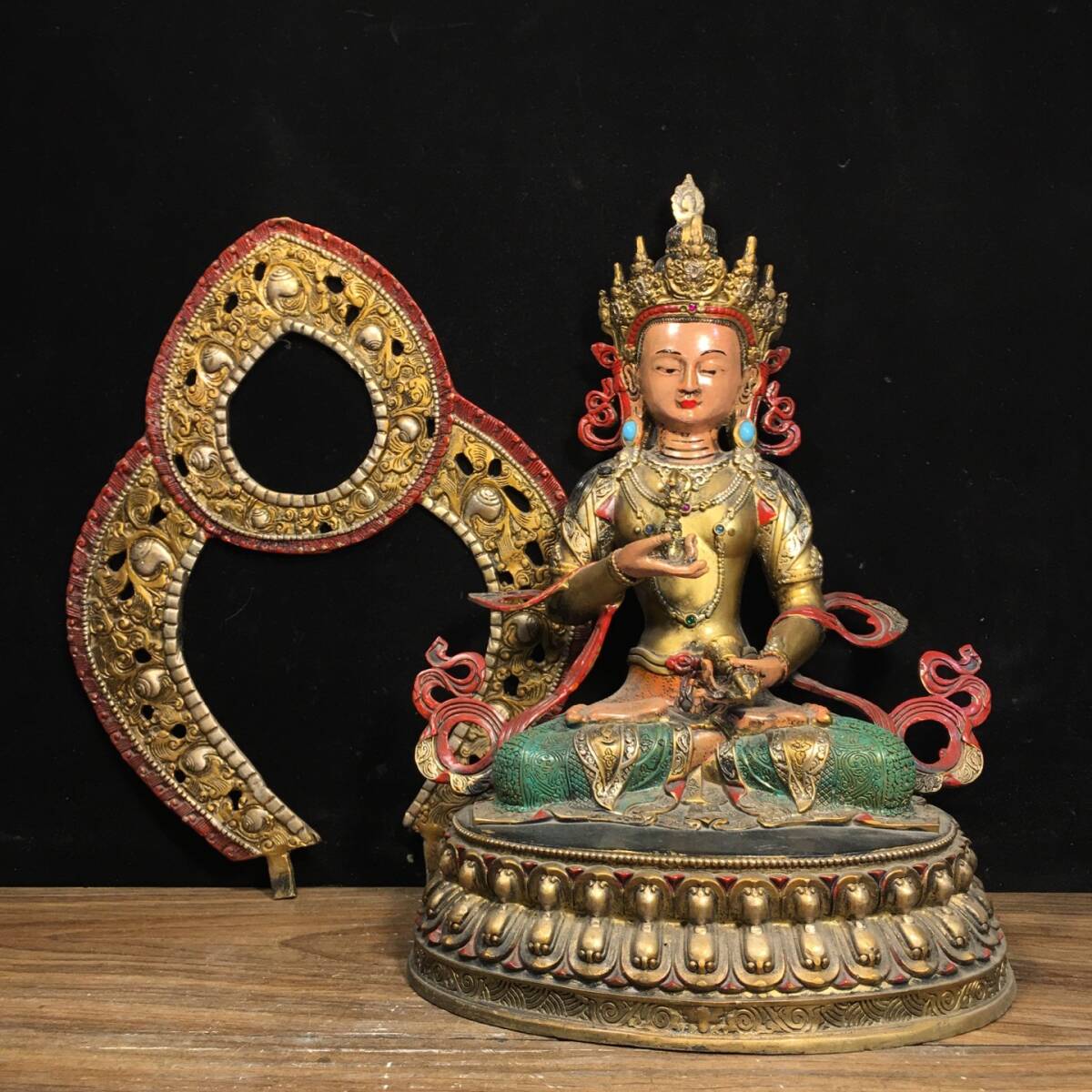 【超珍館蔵】銅製 塗金 彩繪 金剛薩スタック 仏教古美術 供養品 古賞物 古美術品 稀少珍蔵品