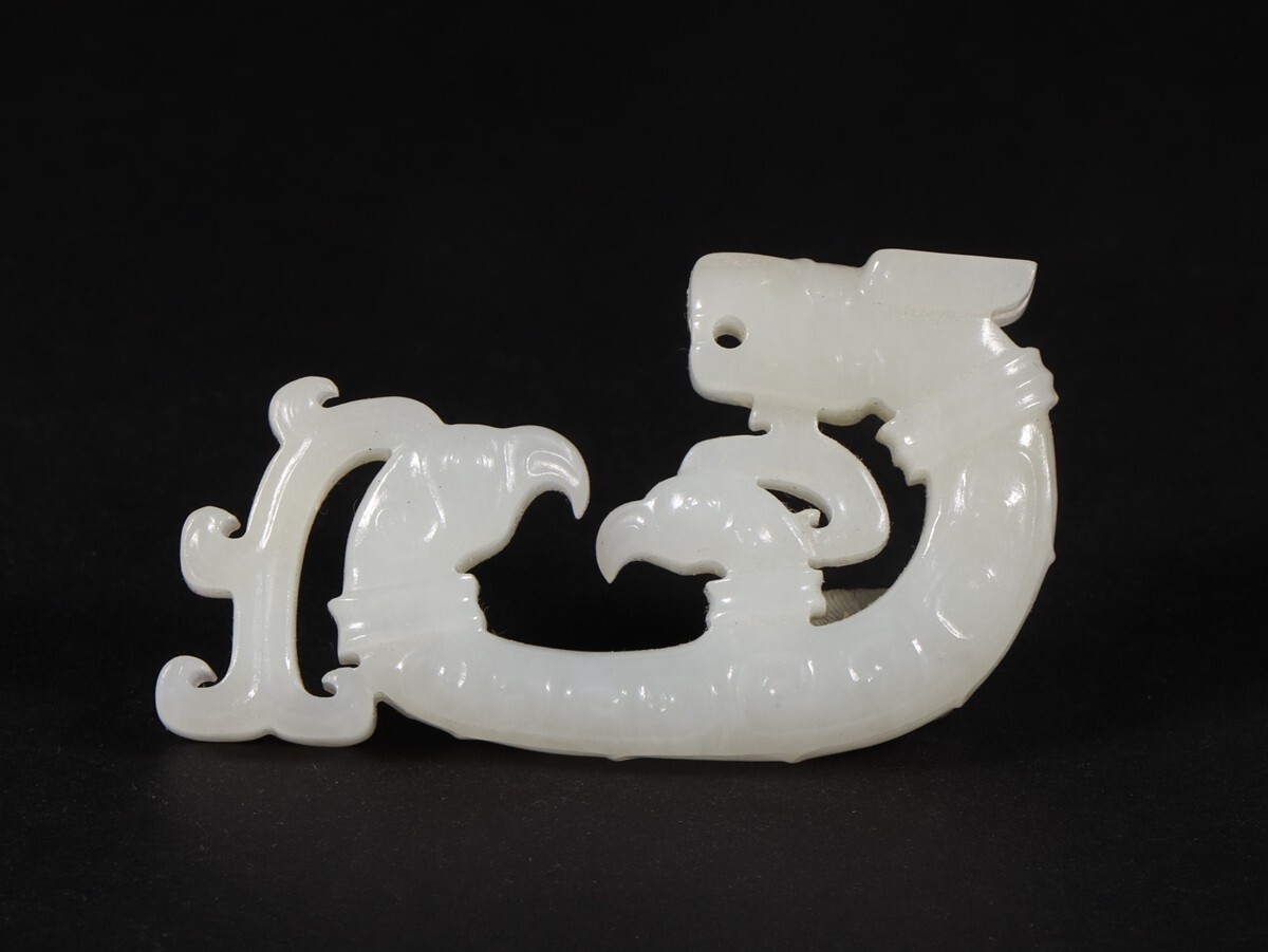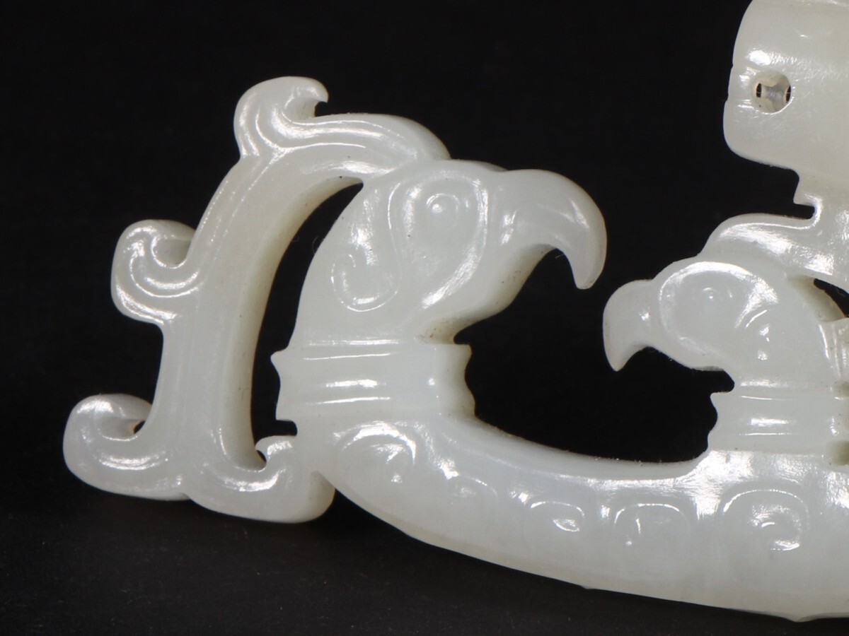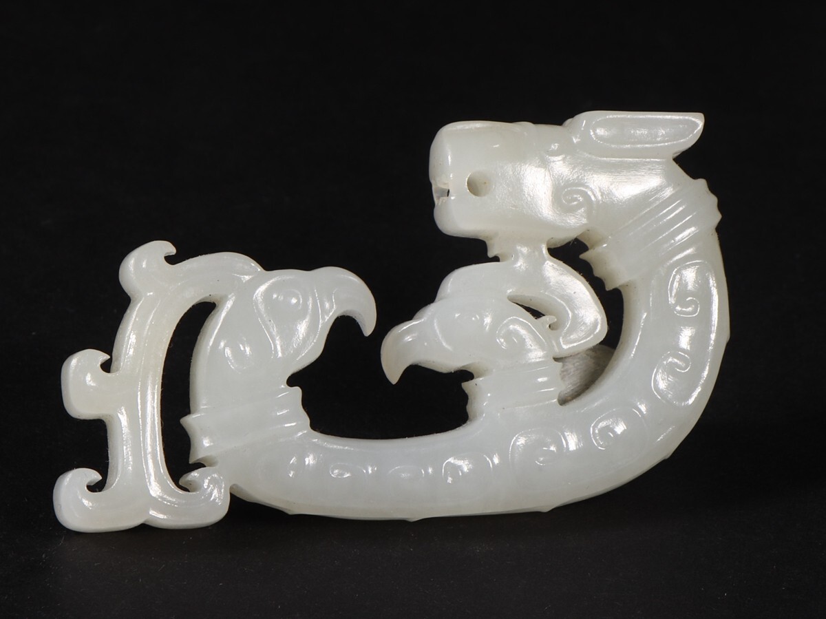 「清時代 和田玉 白玉彫り 龍鳳 掛件」極細工 裝身具 賞物 中国古美術 旧蔵出