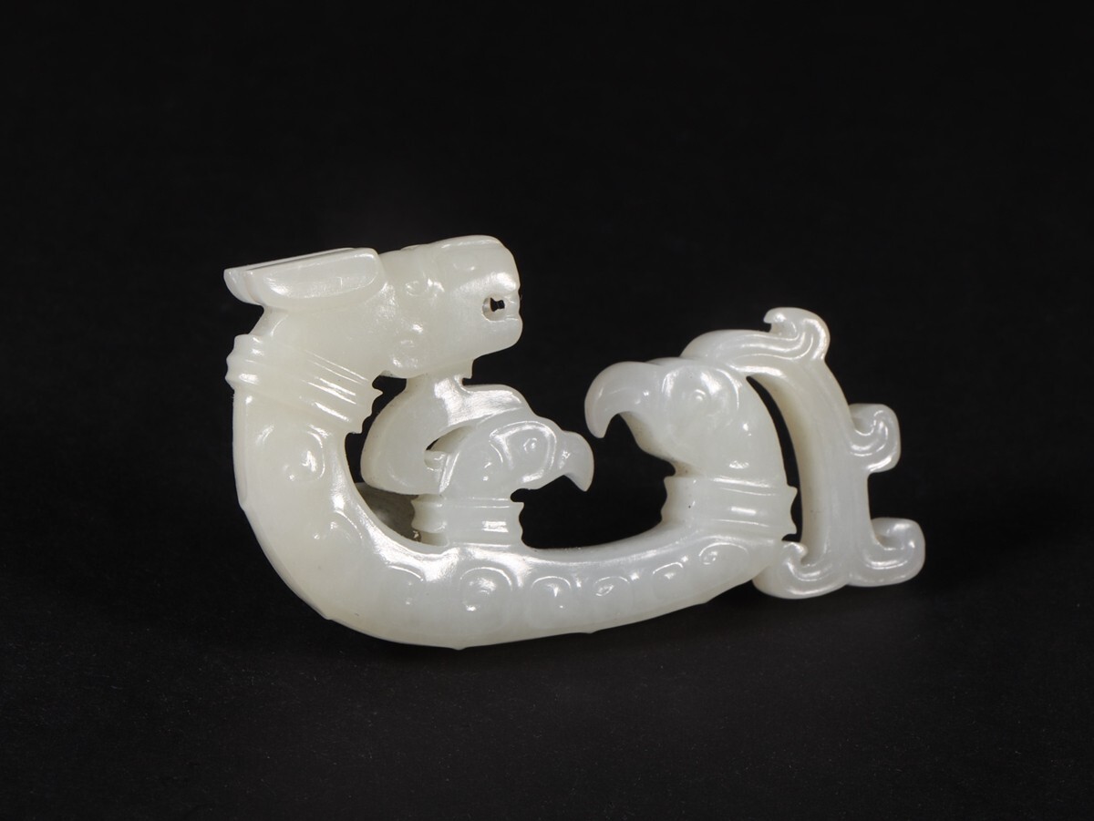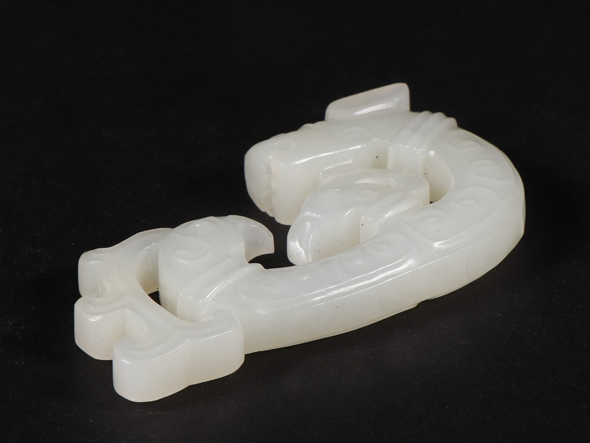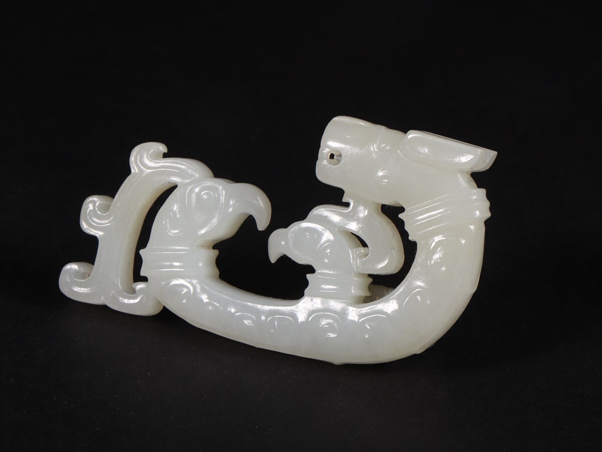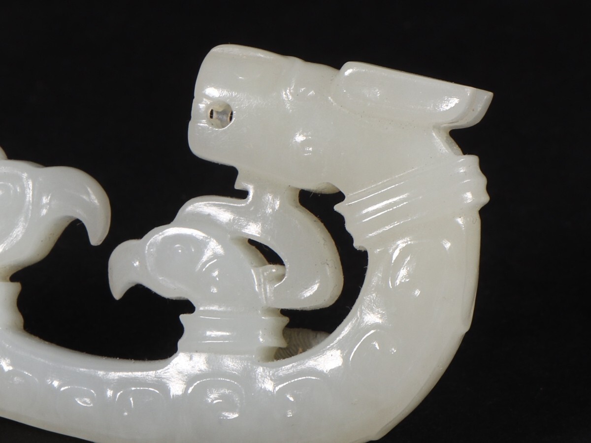「清時代 和田玉 白玉彫り 龍鳳 掛件」極細工 裝身具 賞物 中国古美術 旧蔵出