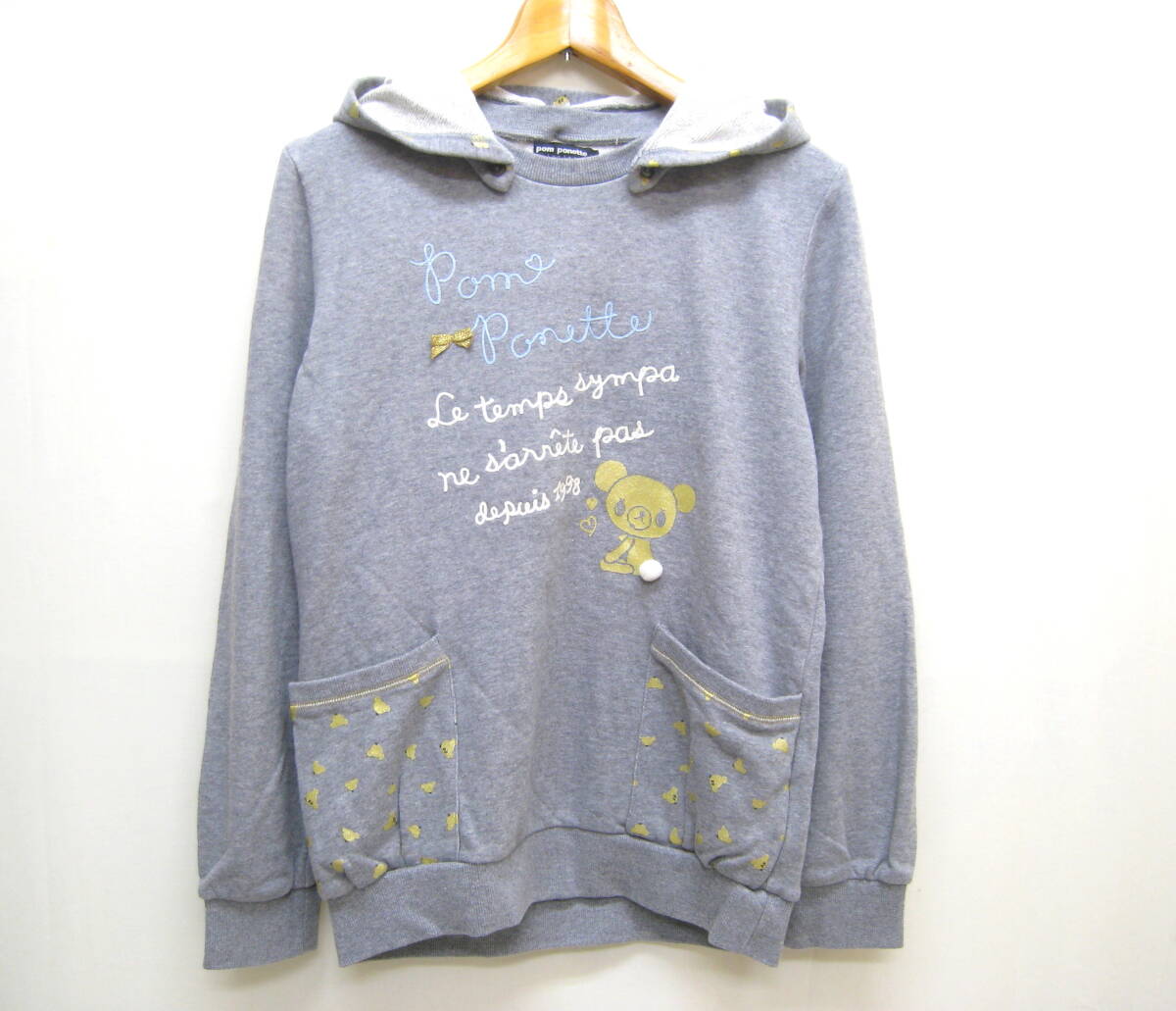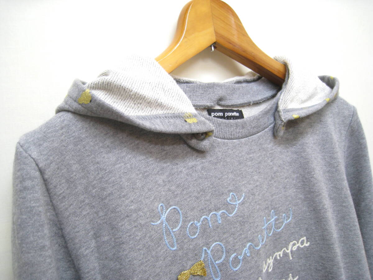 ★pom ponette◆ポンポネット スウェット トレーナー パーカー 取外しフード 刺繍 プリント キッズ サイズL/160★ | ||||
