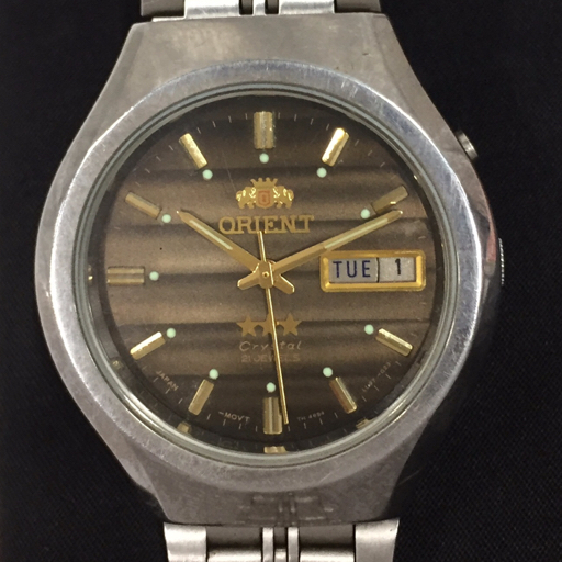 | 1円 オリエント スリークリスタル 469LU9-7A 自動巻き 腕時計 デイデイト ブラウン文字盤 メンズ ブランド時計 稼働品 |