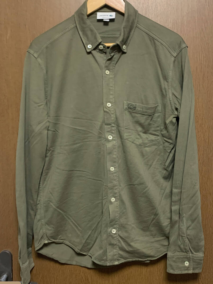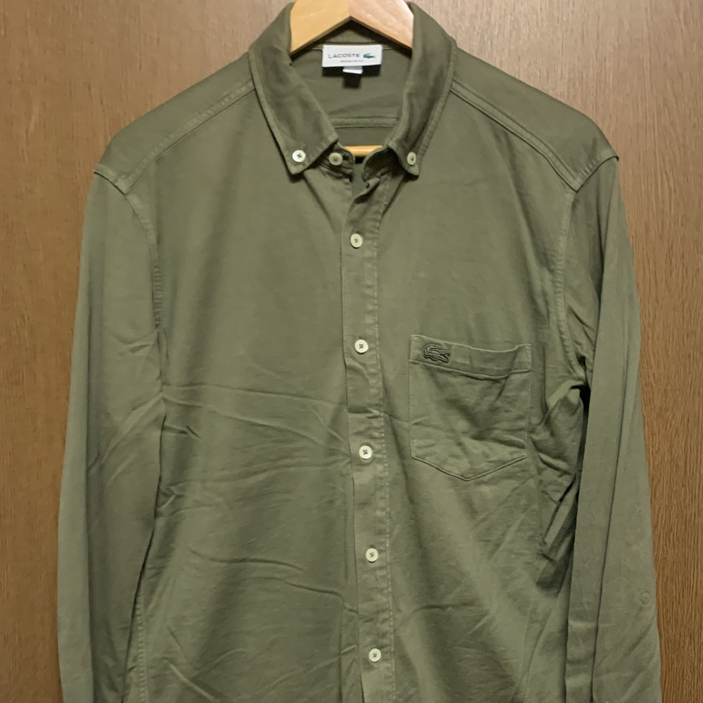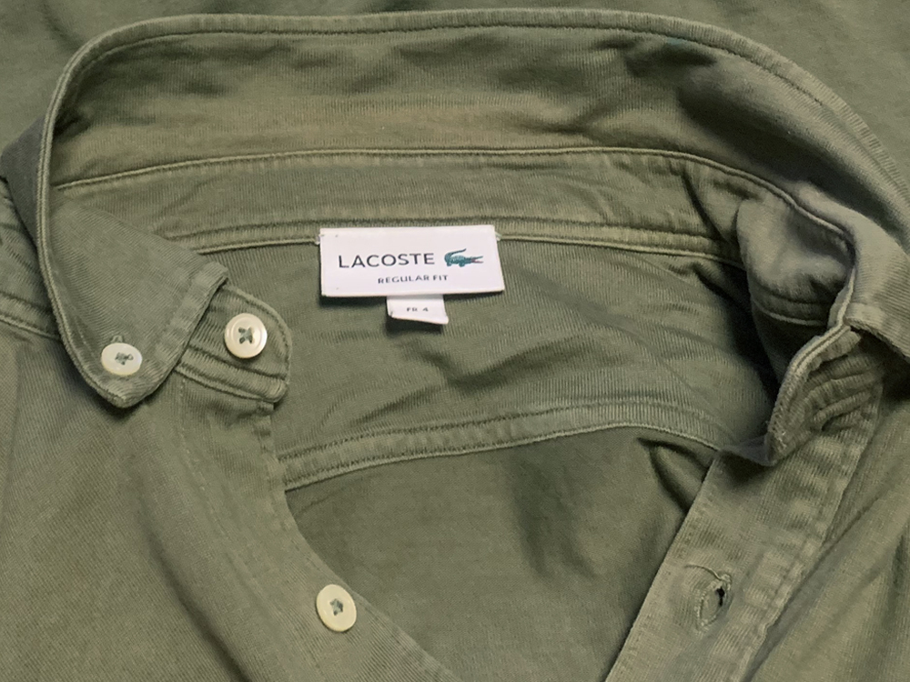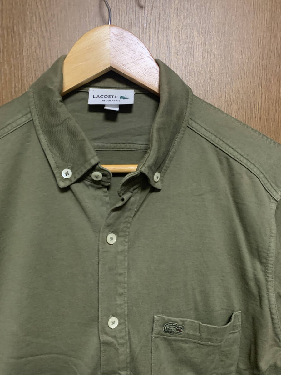 M【LACOSTE|長袖BDシャツ】ラコステ グリーン系 ニットシャツ ボタンダウン 長袖シャツ
