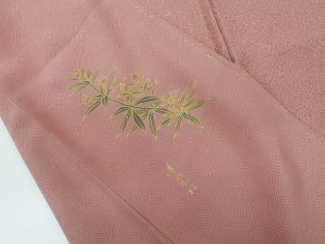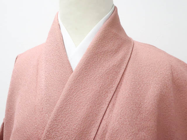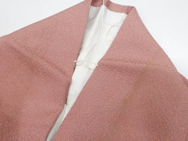 リサイクル商品のため、上前にしみがございます。 衿汚れがございますが着用可能なお品です。 地色は薄赤紫です。 1枚目の画像が近いお色かと思われます。 素材は正絹です。 |