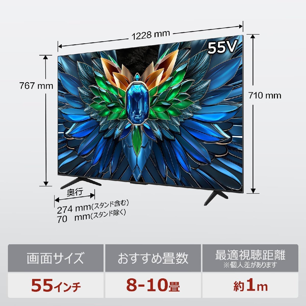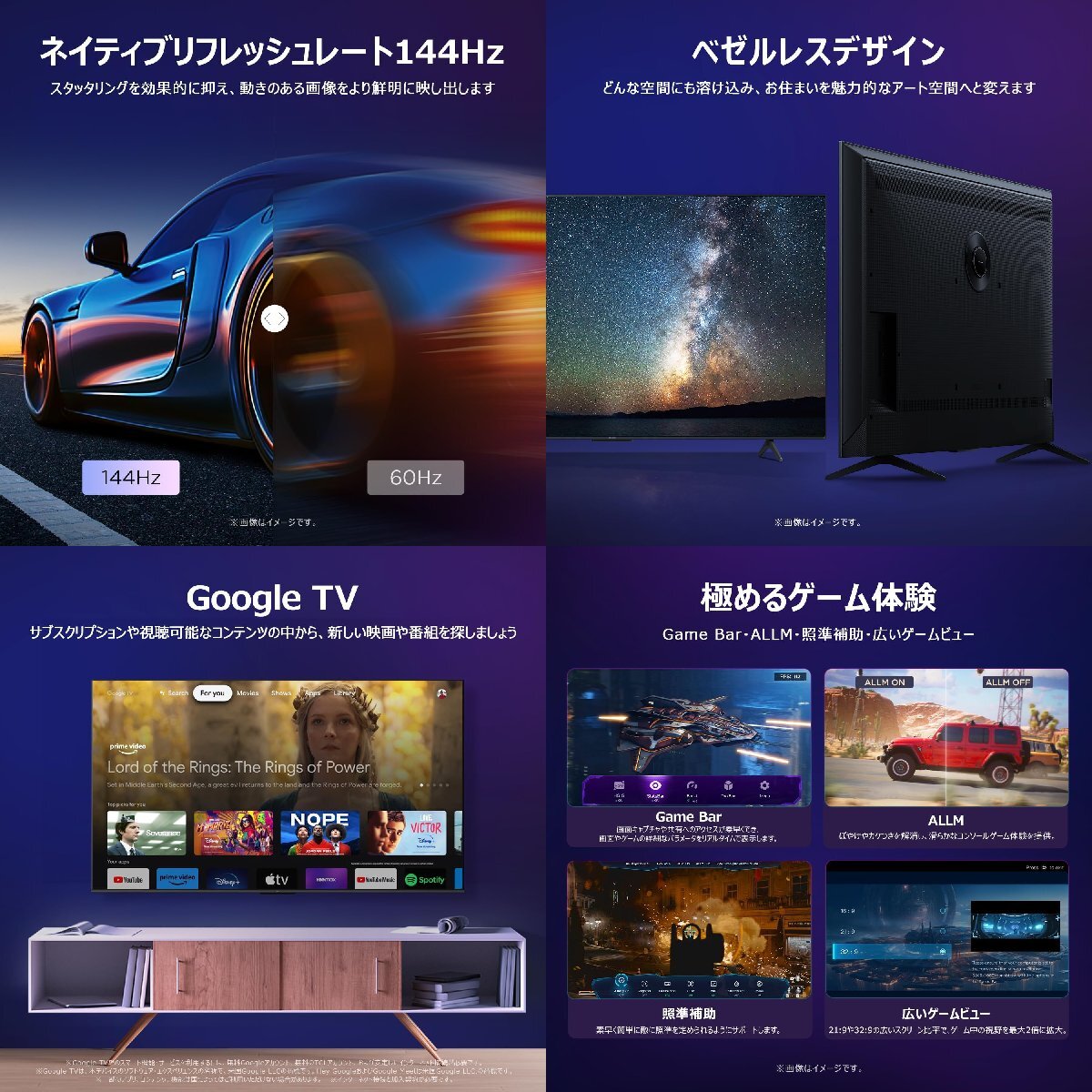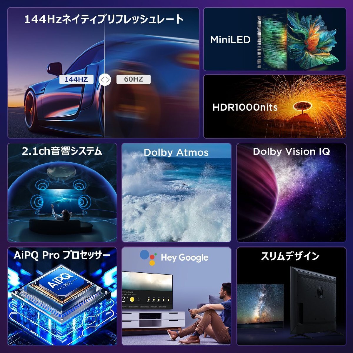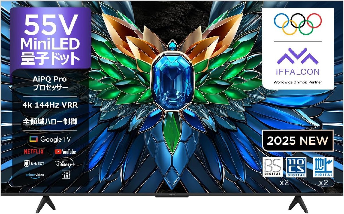 iFFALCON 55V型4K液晶テレビ 55U85 Wチューナー Mini LED 倍速 Google TV AI映像補正 144Hz VRR Dolby Vision IQ Dolby Atmos 保証有
