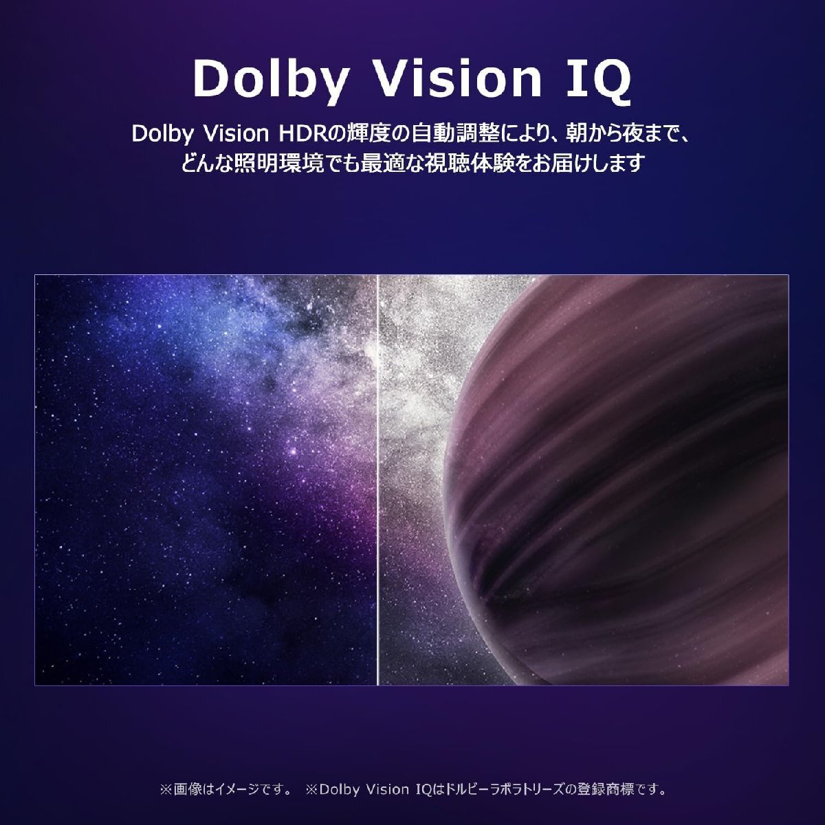 臨場感あふれるビジュアル体験:Dolby Vision IQとHDR10+がシーンごとに輝度・色合いを最適化。さらにDolby Atmos・DTS Virtual:X スピーカーが包み込むような立体音響を再現。