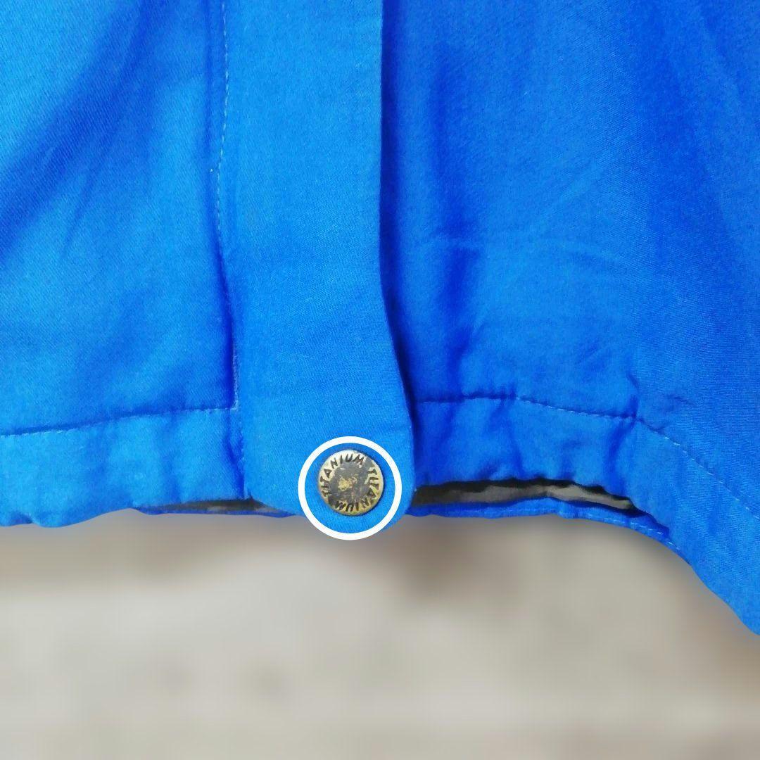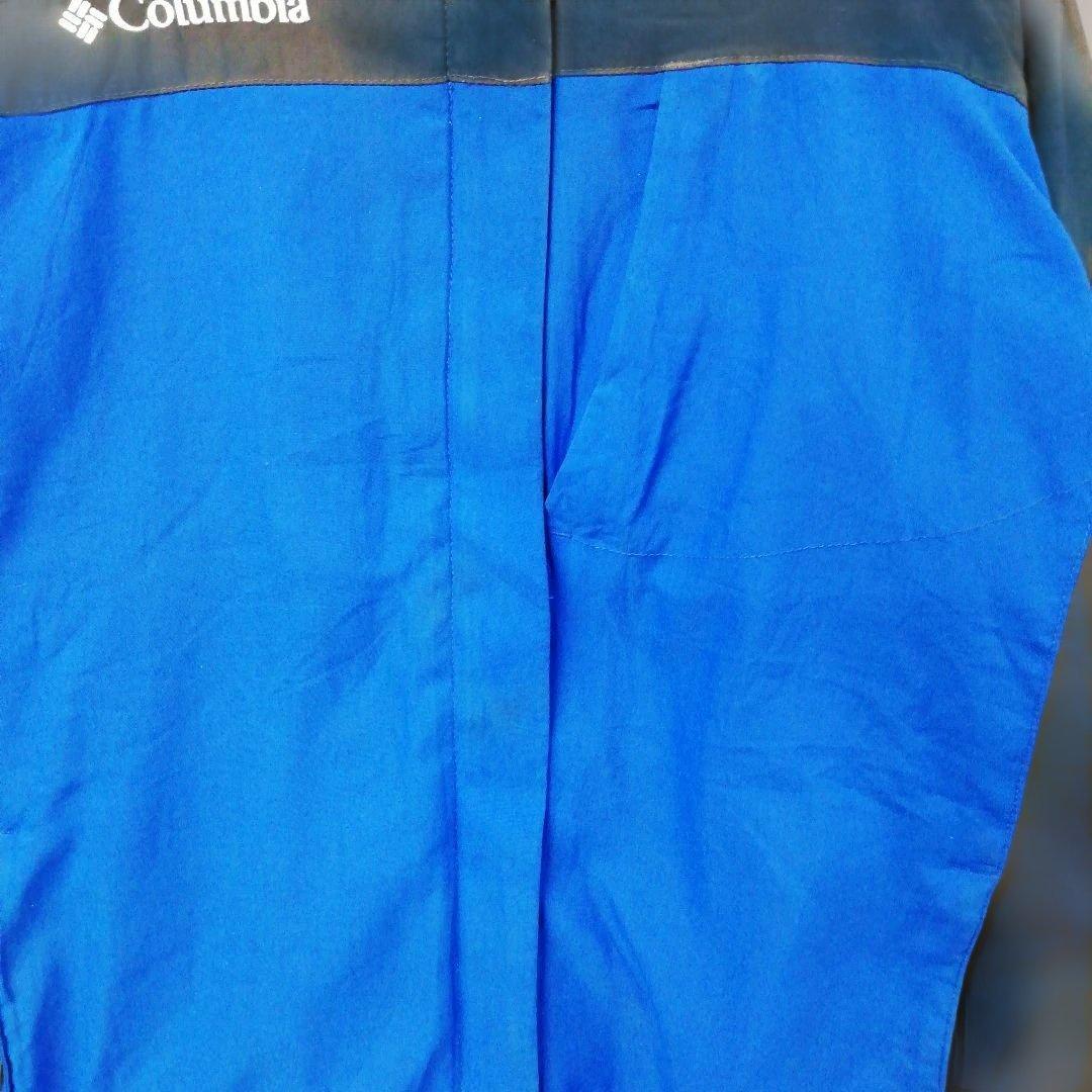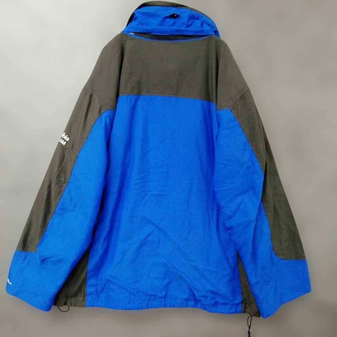 ブルー×グレーの切り替えデザインで、アウトドアからタウンユースまで幅広く活躍します。防風性・撥水性に優れた素材を使用し、登山やキャンプなどにも最適です。