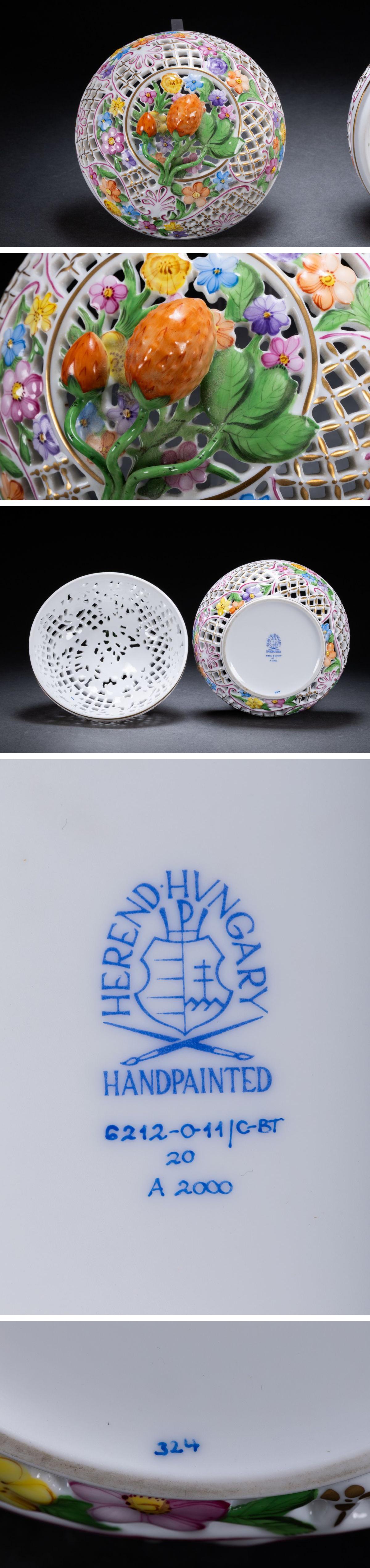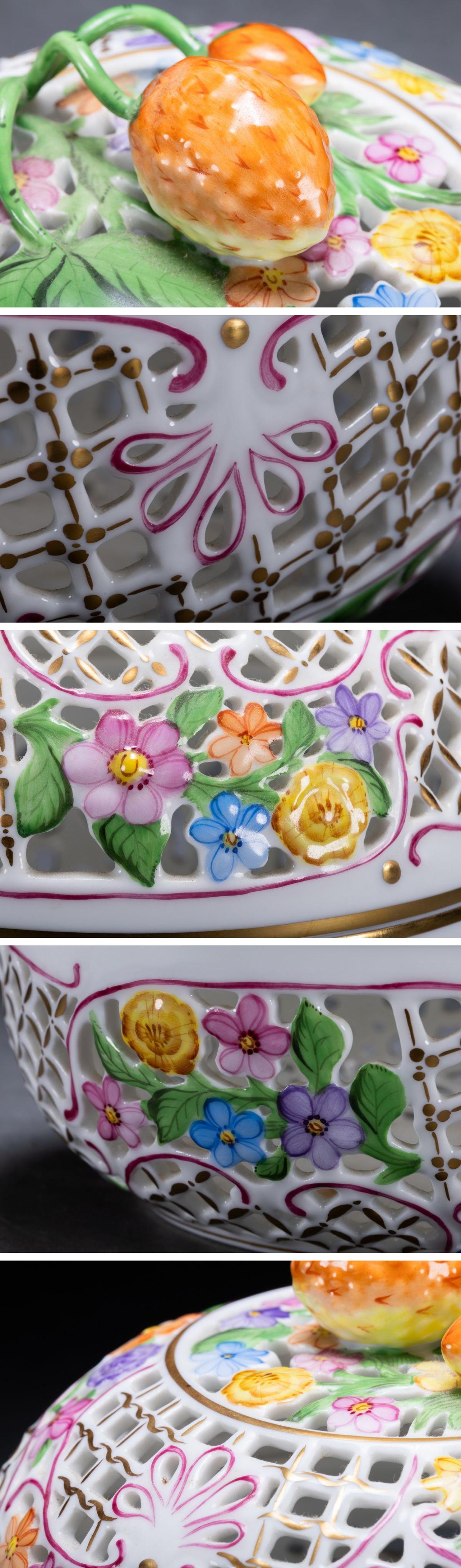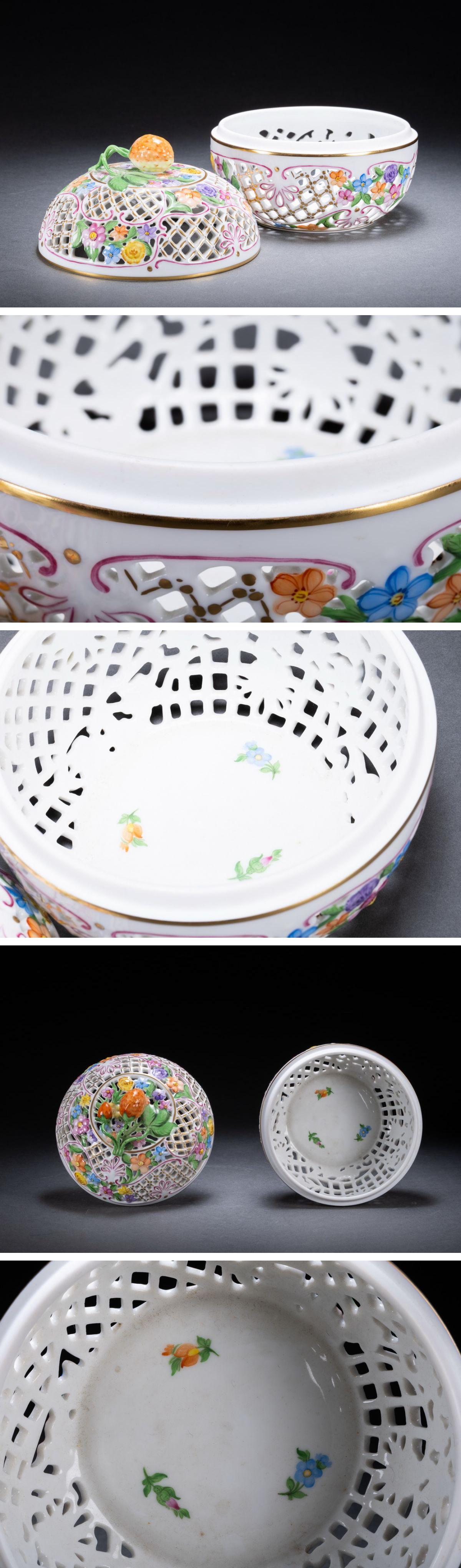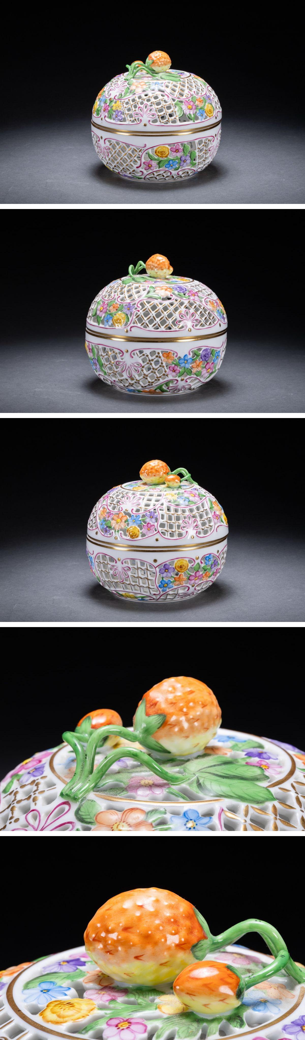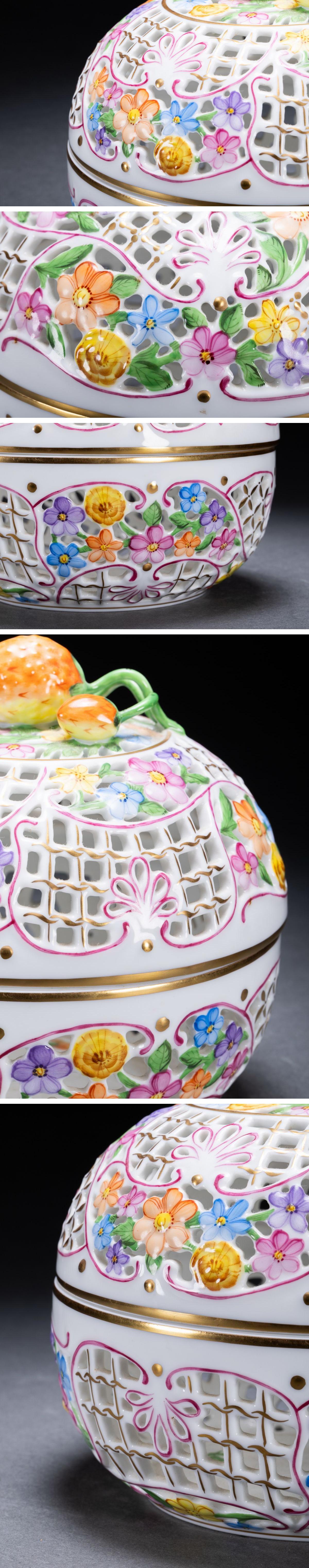 【雲錦】某有名オークション購入HEREND ヘレンド白磁 色絵花卉紋蓋物 菓子入 洋食器具 極美品WK9-232L