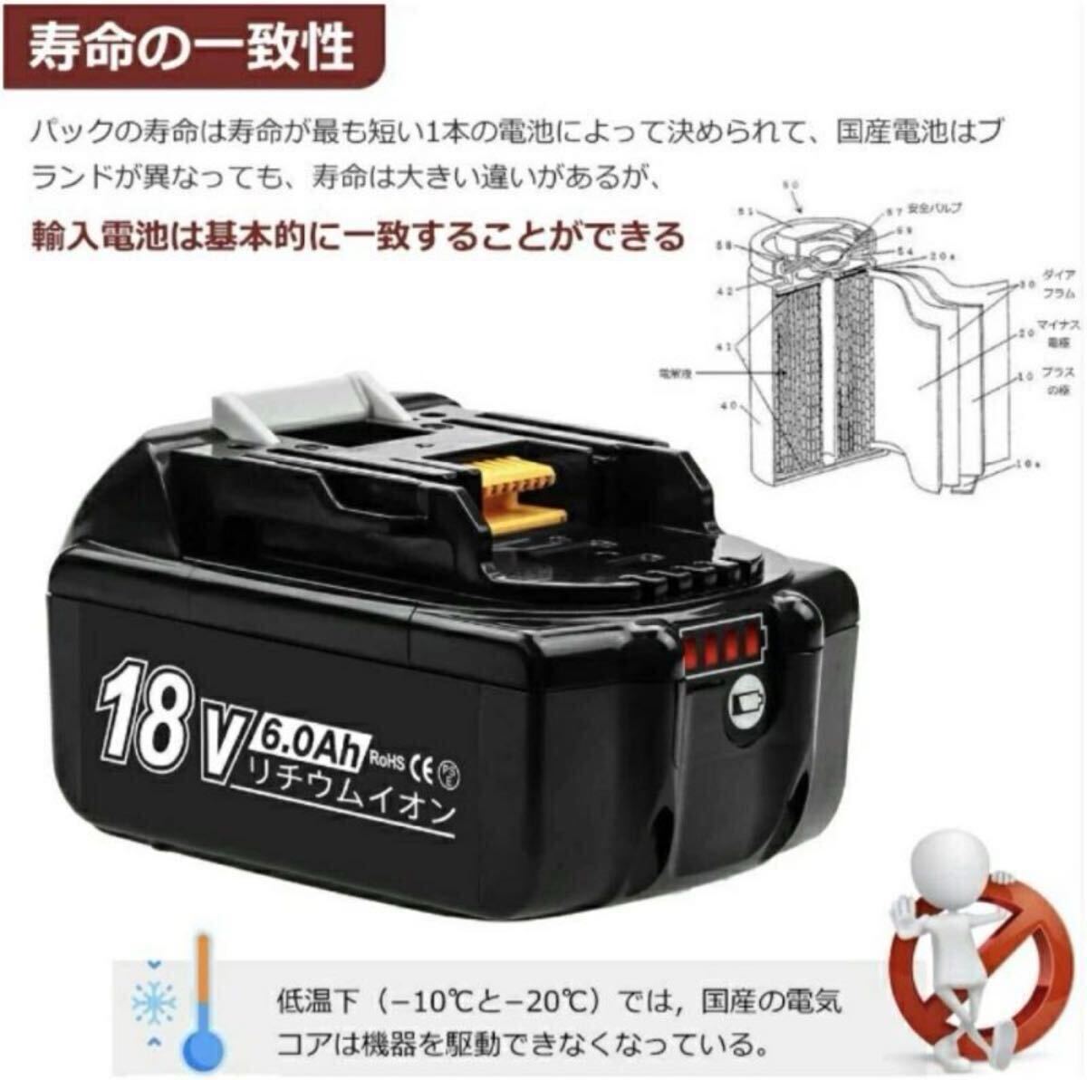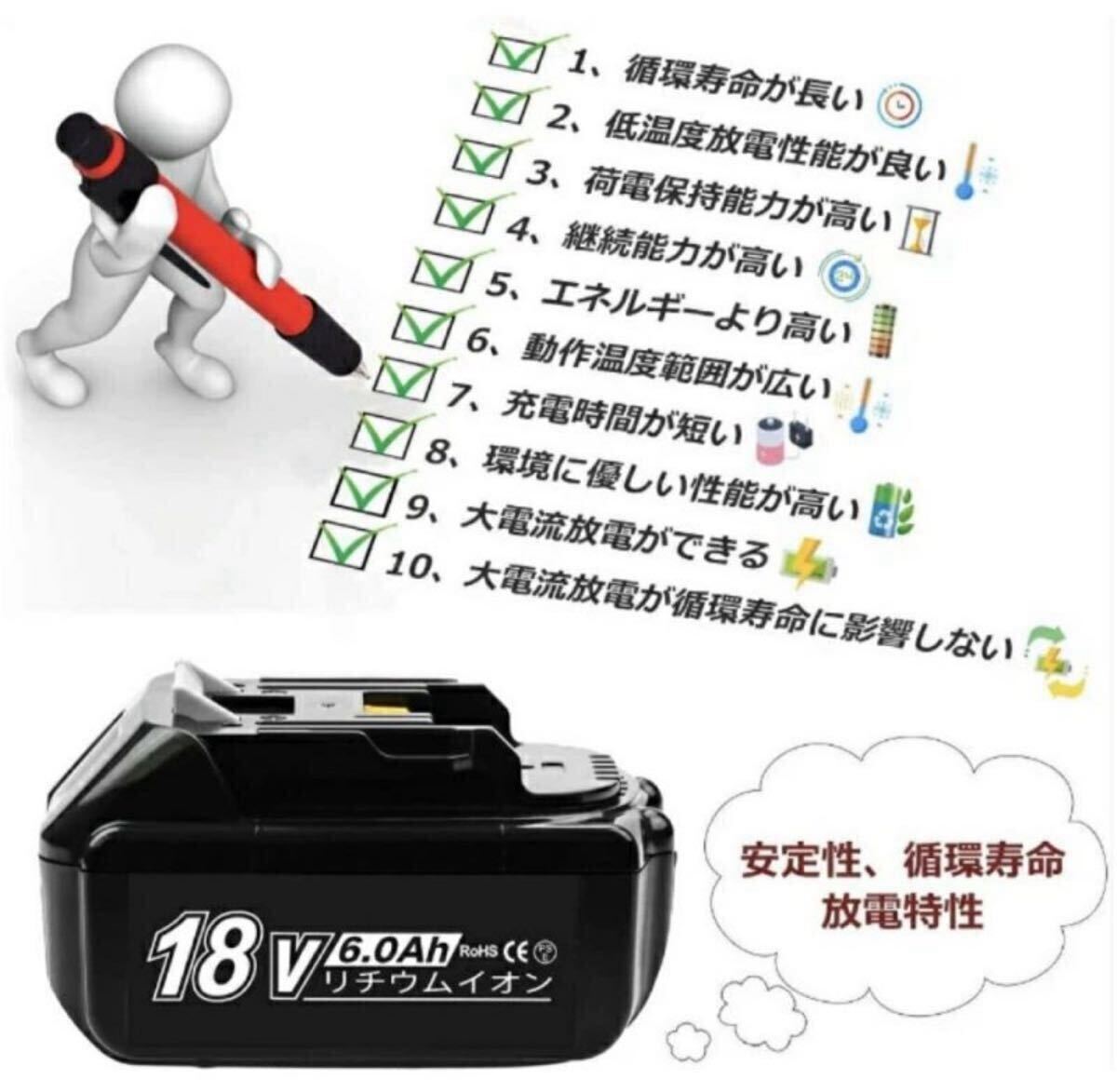 6.0Ahの高容量なので、お作業の際、スピードとパワーが増すし、 電動工具が長い時間作業できます。