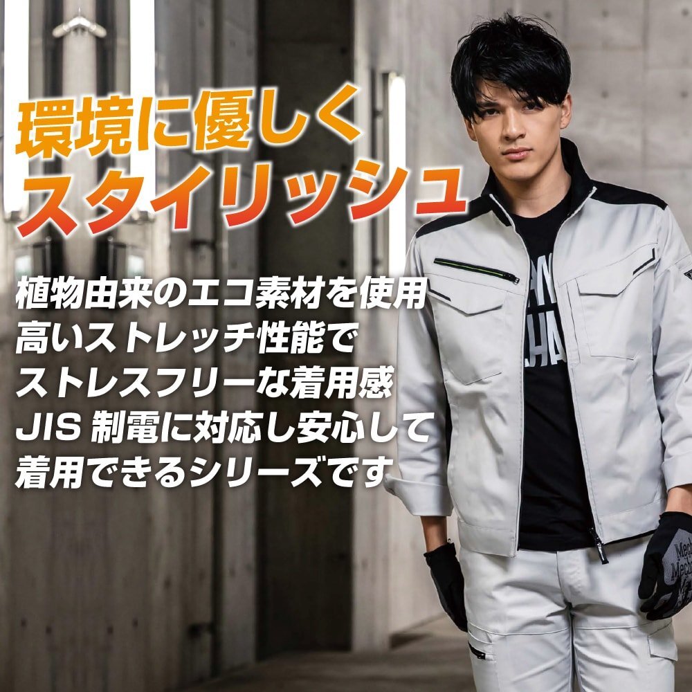 仕様:帯電防止/ストレッチ/ペン差し/両胸フラップポケット/左胸タテ型ポケット/背当てメッシュ付き/反射材つき/エコ素材/男女ペアシリーズ
