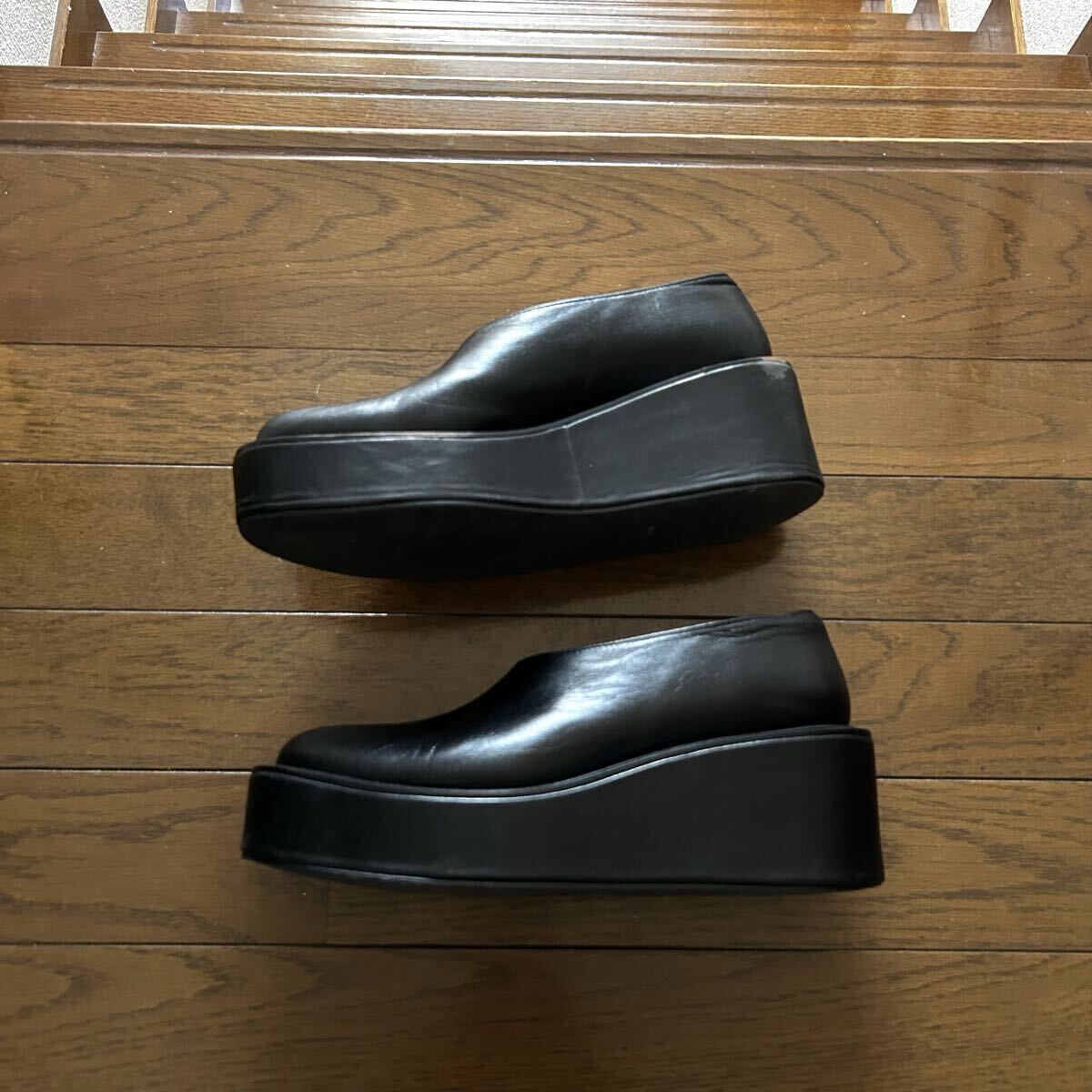 ふちを出してエッジを効かせつつ、極力、細かいパーツに分けて縫い合わすことなく、モードに仕上げました。厚底ながら前後の高低差がないので、足が疲れにくくなっています。合わせやすいオールブラックと、ベージュ×ブラックの配色が新鮮な2色展開で、コーディネートのポイントになるシューズです。