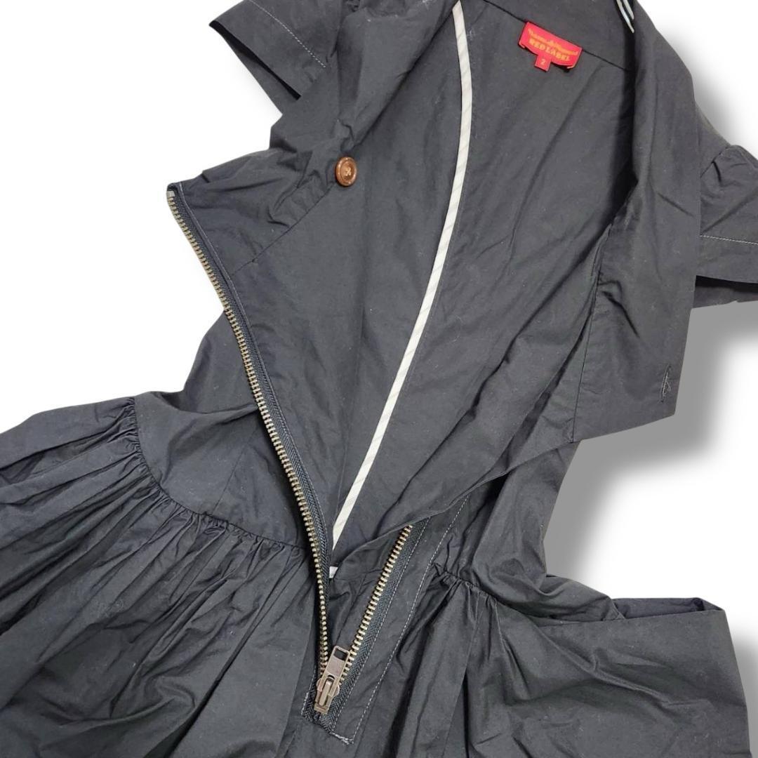 Vivienne Westwoodの人気ライン「RED LABEL」のドレス。大きなジッパーデザインと立体的な襟が特徴的で、ブランドらしい個性と品格を兼ね備えた一着です。軽やかなコットン素材でシーズンレスに着用可能。モードにもカジュアルにも着こなせる万能アイテムです。