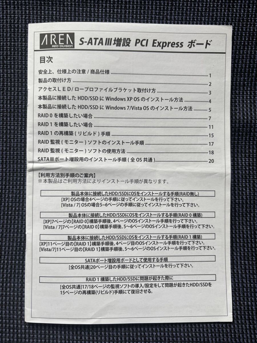 購入後、Windos7機でRaid0で使用していましたが、その後はSATAボードとして増設ハードディスクを接続していました。