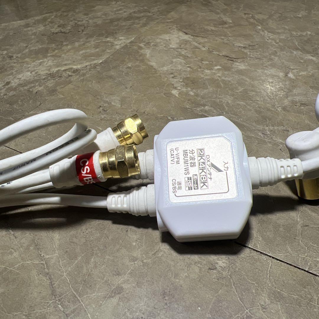 DXアンテナ 分配器 アンテナ分配器 2分配 地デジ・BS/CS放送対応 【2K 4K 8K(3224MHz)対応】 ケーブル一体型 出力側ケーブル50cm ホワイト EC-2D3WH(H)